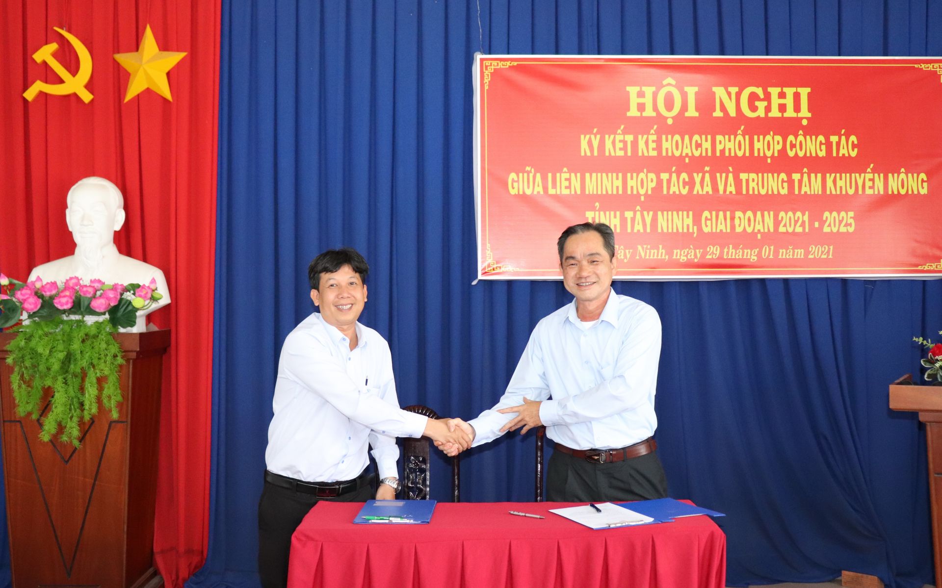 Sáng 29.1, Liên minh Hợp tác xã tỉnh phối hợp với Trung tâm Khuyến nông tổ chức hội nghị ký kết kế hoạch phối hợp công tác giai đoạn 2021–2025. Tham dự có các đại biểu đại diện các Trạm Khuyến nông, nông dân và các hợp tác xã (HTX) trên địa bàn tỉnh.