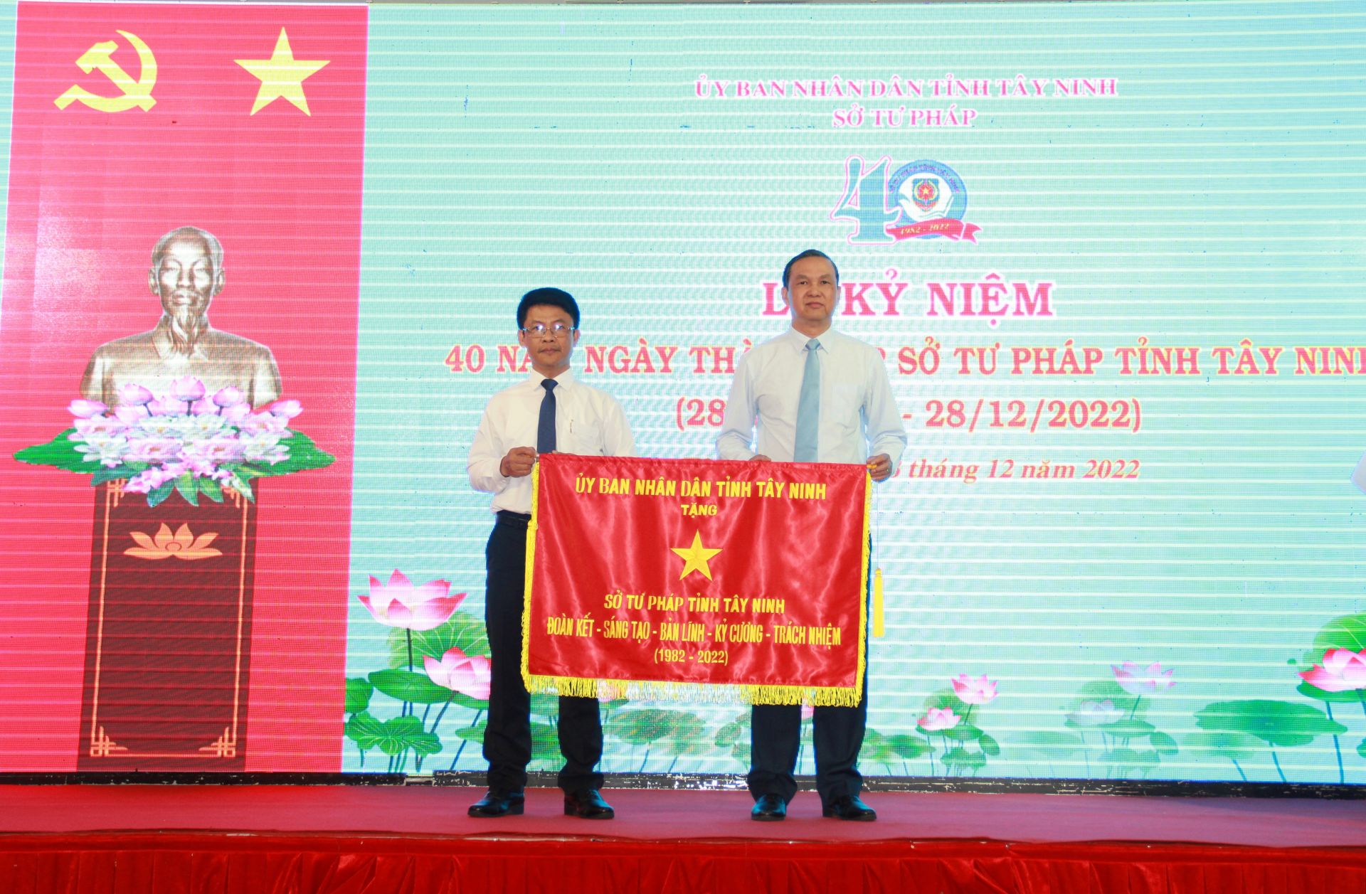 UBND tỉnh tặng bức trướng cho tập thể Sở Tư pháp.