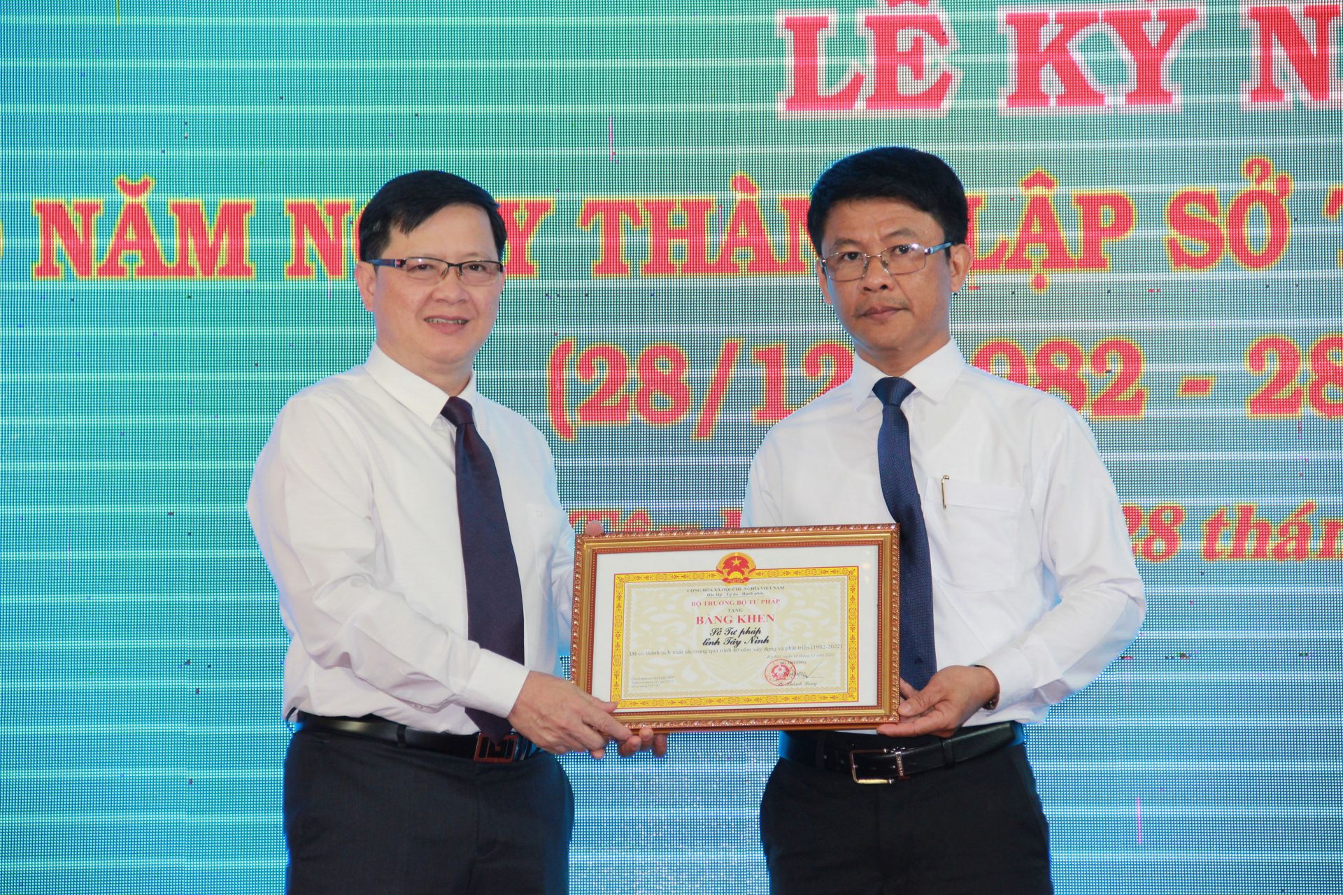 Dịp này, tập thể Sở Tư pháp được nhận bằng khen của Bộ trưởng Bộ Tư pháp với thành tích xuất sắc trong suốt 40 năm xây dựng và phát triển; 30 cá nhân được tặng Kỷ niệm chương Vì sự nghiệp Tư pháp; 7 cá nhân được Chủ tịch UBND tỉnh tặng bằng khen có nhiều đóng góp vào quá trình xây dựng và phát triển ngành Tư pháp của tỉnh.