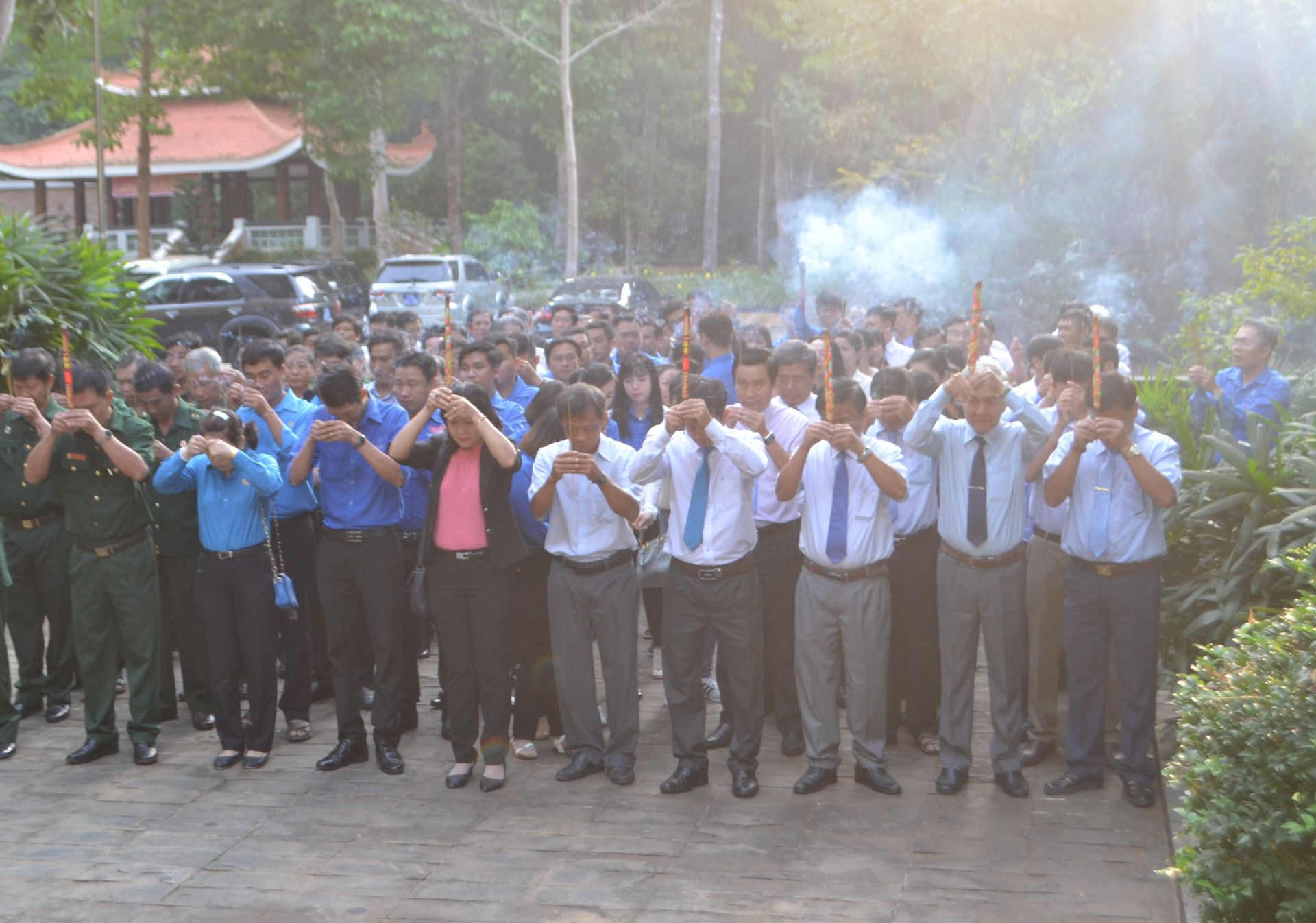 Đại biểu dâng hương tại Nhà tưởng niệm di tích Đảng ủy Dân Chính Đảng Trung ương Cục miền Nam.