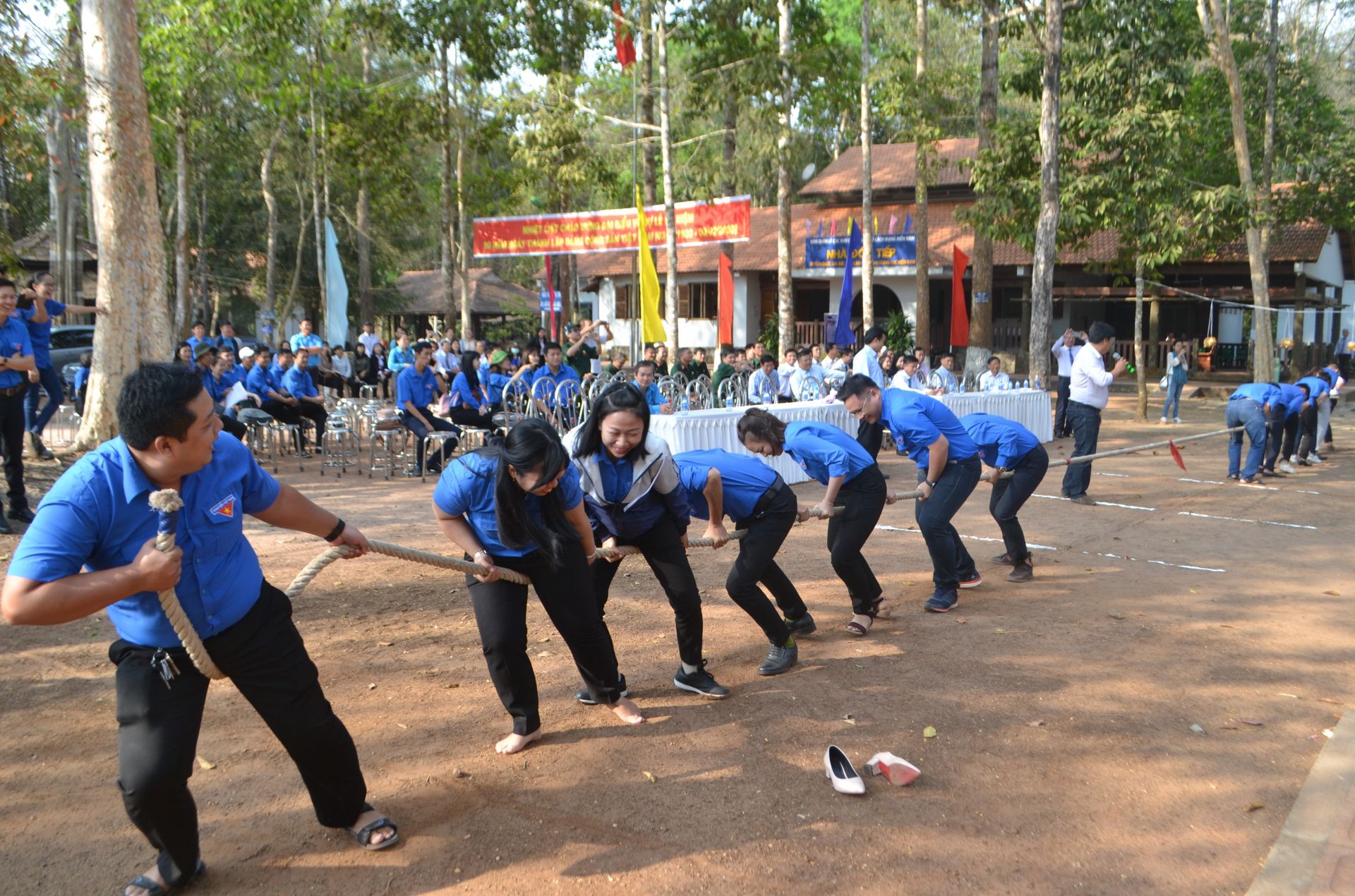 Đoàn viên Công đoàn, ĐVTN và hội viên Hội CCB tham gia các hoạt động trò chơi dân gian sôi nổi, góp phần tạo không khí phấn khởi cho buổi lễ.
