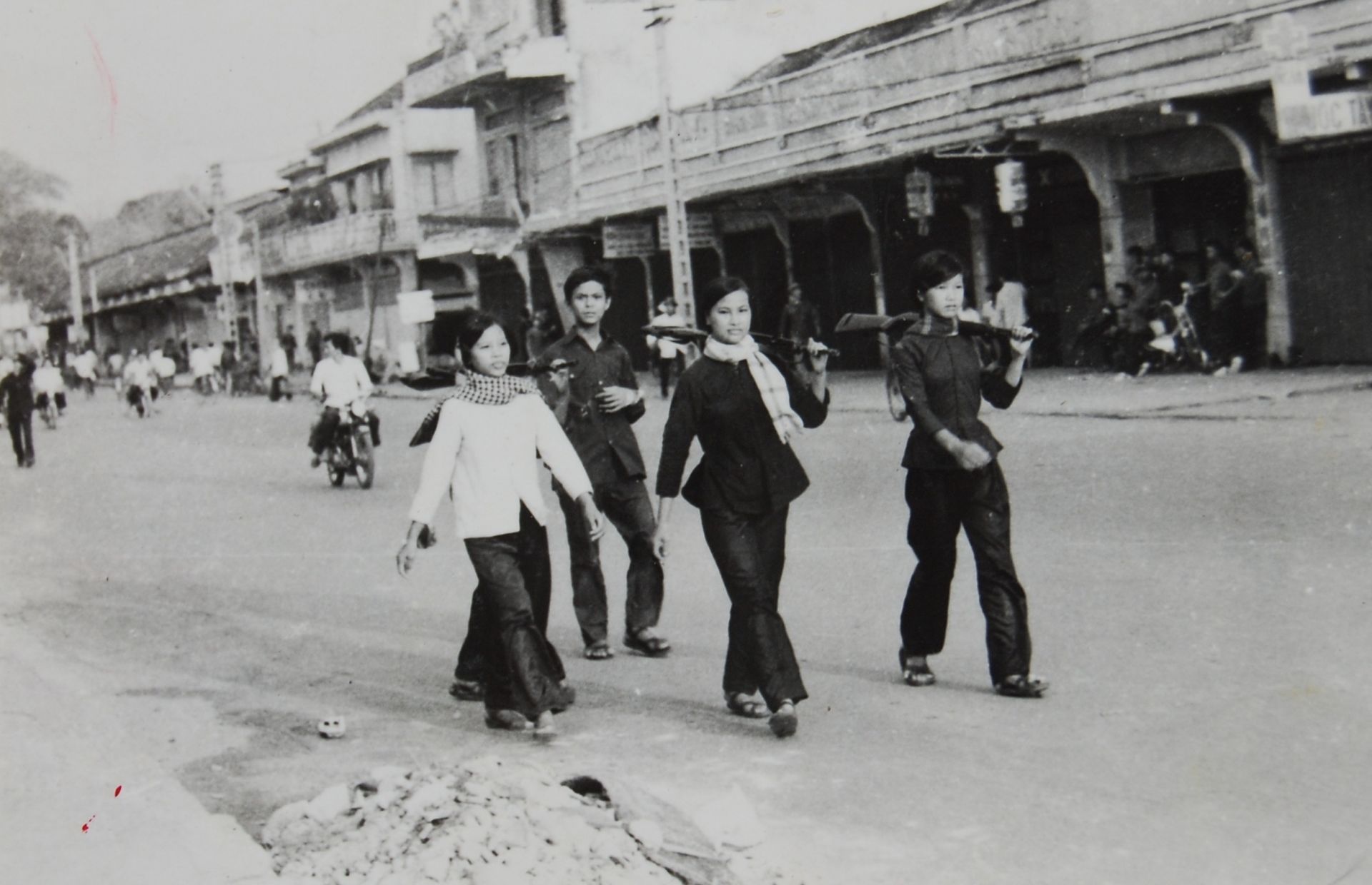 Nữ du kích trên phố Gia Long (đường Cách Mạng Tháng Tám ngày nay) ngày 30.4.1975. Ảnh: tư liệu Ð.H.T