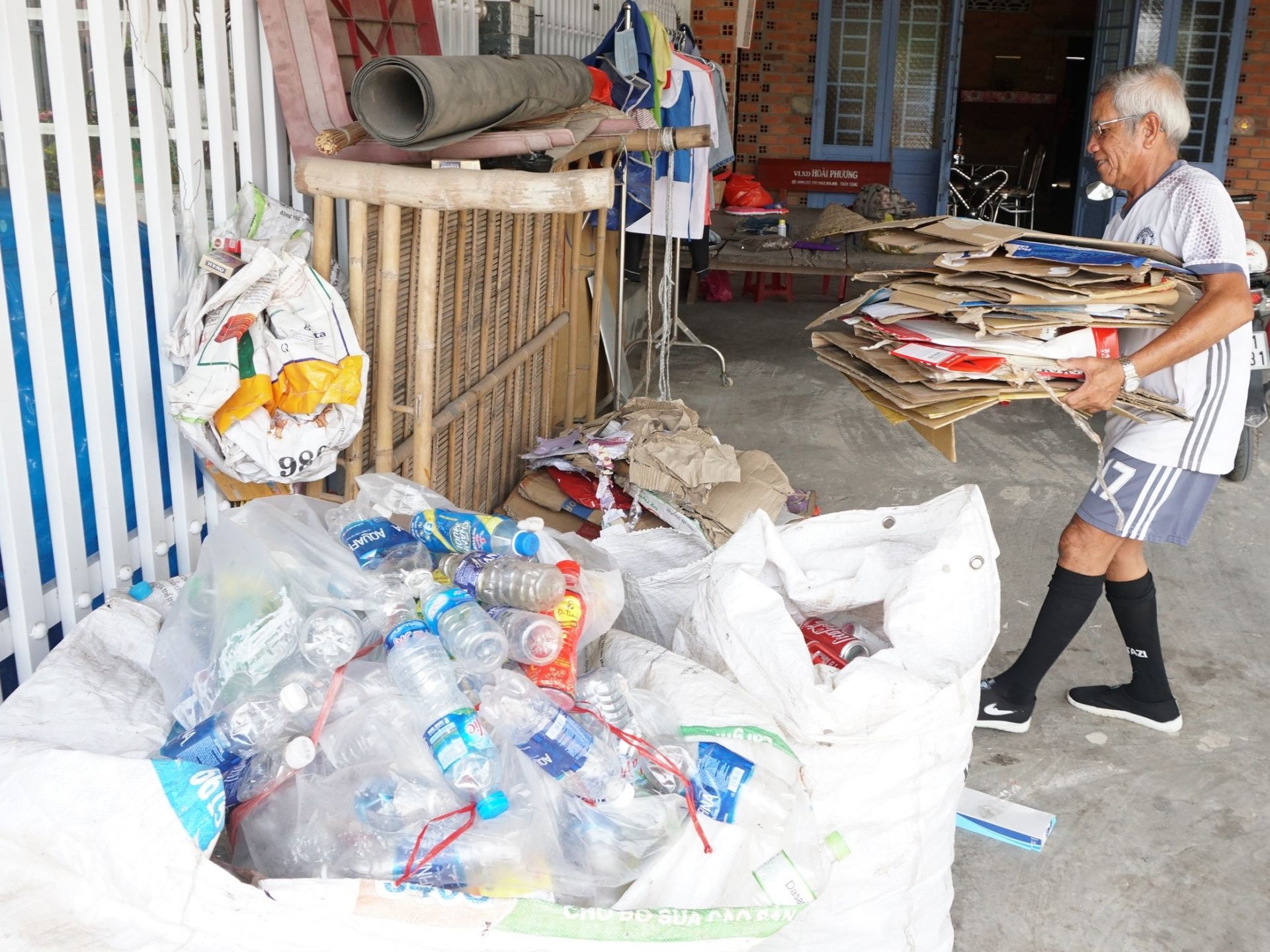 Sau một thời gian, ông thấy việc làm này chẳng có gì phải xấu hổ nên mạnh dạn nhặt ve chai, mủ bể trong xóm, trong thùng đựng rác trước cửa nhà dân. Ông Sữa kể: “Mỗi khi nhìn thấy có đồ phế thải bỏ trước nhà dân, tôi bước vào, chào hỏi và xin chủ nhà nhặt. Khi nào chủ nhà đồng ý, tôi mới nhặt.