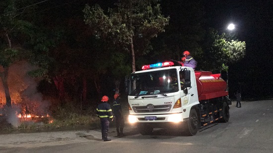 Nhận tin báo, Phòng Cảnh sát PCCC và CNCH Công an Tây Ninh nhanh chóng điều 2 xe chữa cháy cùng 12 cán bộ chiến sĩ đến ngay hiện trường. Lúc này, ngọn lửa đã bùng phát và có khả năng cháy lan sang các nhà dân xung quanh, chất cháy chủ yếu là cỏ khô.