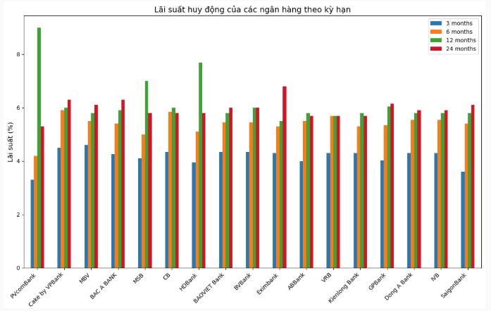 Biểu đồ lãi suất của các ngân hàng có lãi suất huy động cao nhất.