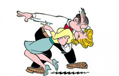 Sau khi hôn xong anh chàng gỡ kính, lột ria giả ra, quay mặt sang phía vợ. Bà vợ bất ngờ kêu lên: