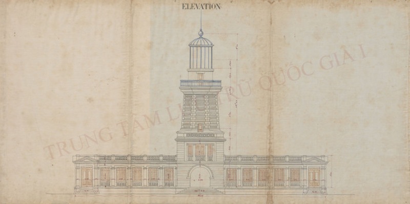 Bản vẽ mặt đứng hải đăng Hòn Dấu năm 1895. Ảnh: TTLTQGI