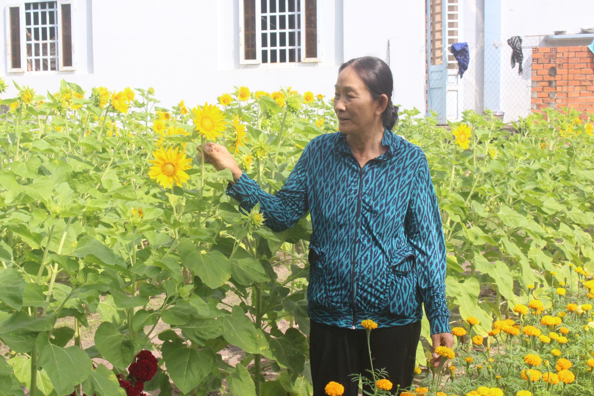 Vào mỗi dịp tết, bà lại chăm chỉ trồng hoa bán tết. Vườn hoa của bà có đủ các loại, nhiều nhất là hoa vạn thọ, rồi xen kẽ hoa mào gà, hoa cúc. Đặc biệt, gây chú ý nhất là những luống hoa hướng dương phát triển xanh tốt, rực rỡ sắc vàng trong nắng.