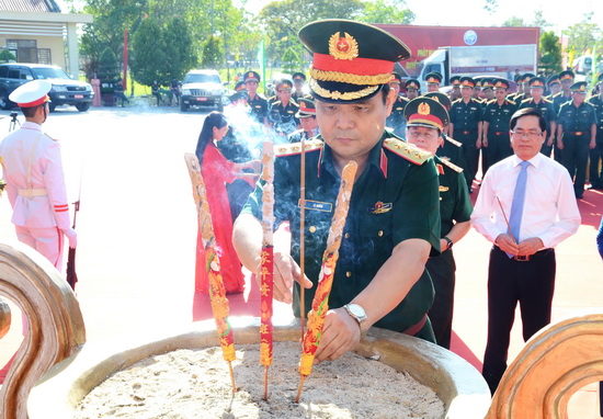 Thượng tướng Lê Chiêm- Thứ trưởng Bộ Quốc phòng dâng hương tại bia tưởng niệm.