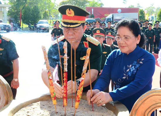 Cùng tham dự đoàn công tác có Thượng tướng Nguyễn Trọng Nghĩa- Phó Chủ nhiệm Tổng cục Chính trị Quân đội nhân dân Việt Nam, Trung tướng Trần Hoài Trung- Chính uỷ Quân khu 7 và lãnh đạo các đơn vị thuộc Bộ Quốc phòng.