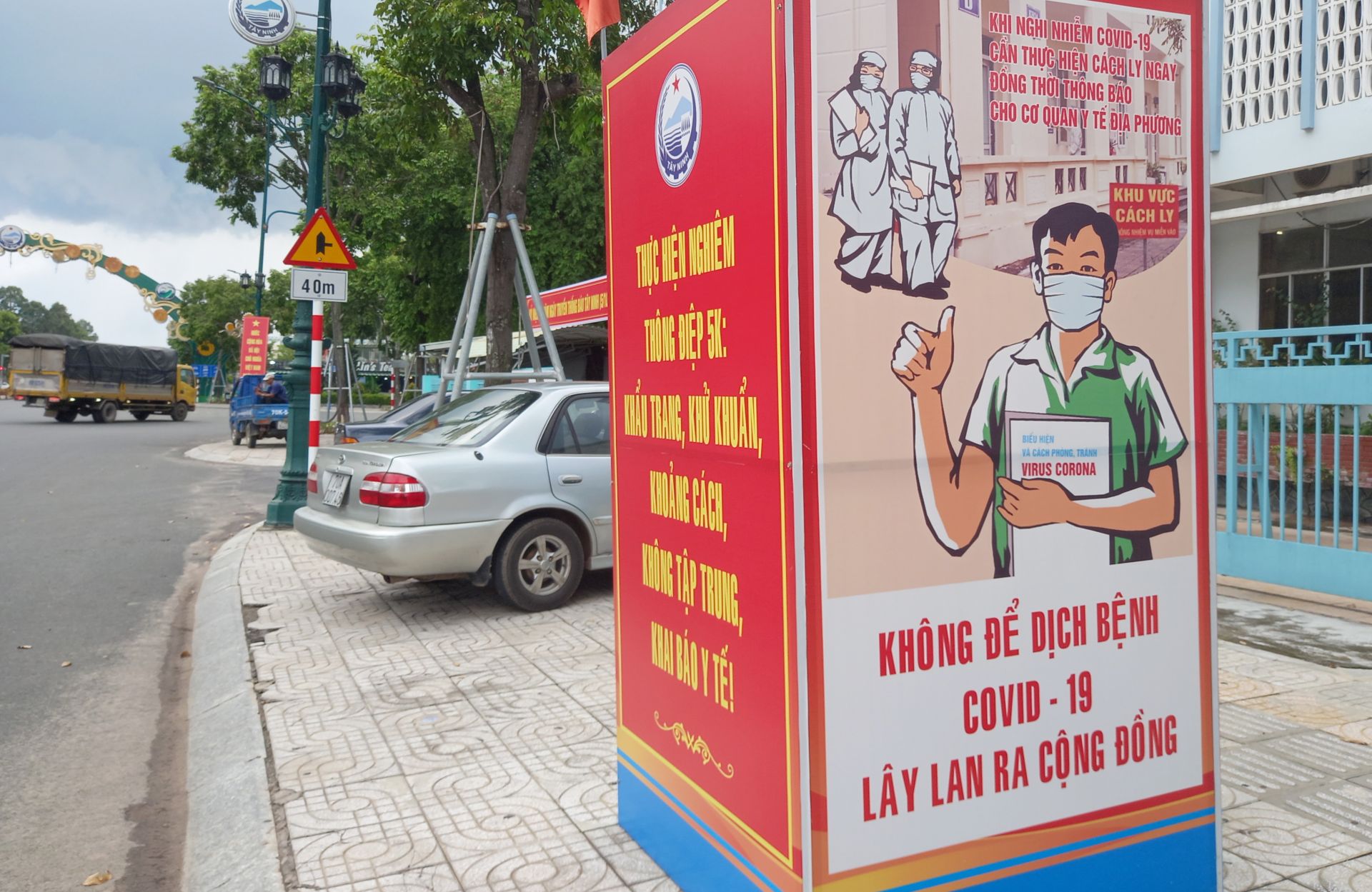 Hệ thống cụm pa nô tuyên truyền về phòng chống dịch trên các tuyến đường chính.