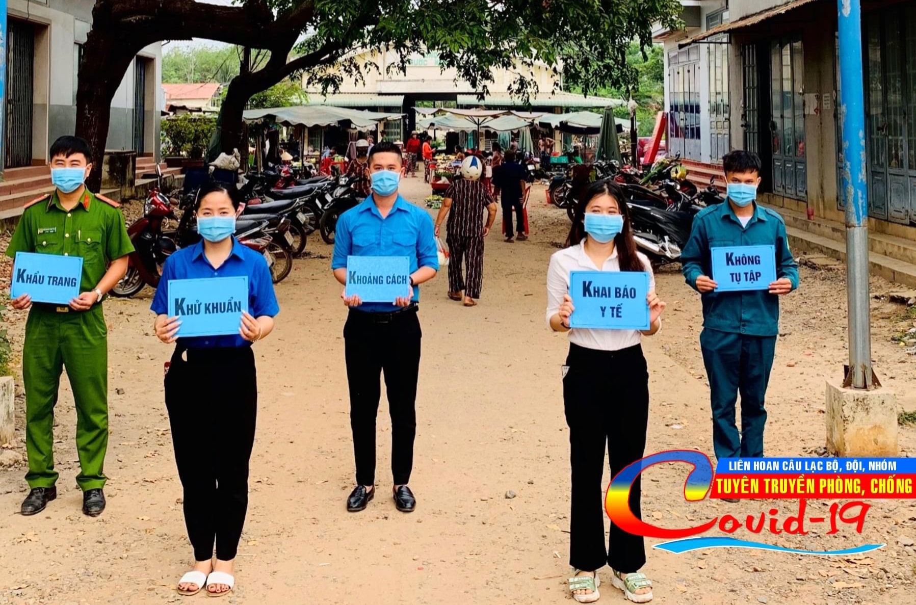 Đoàn thanh niên xã Phước Ninh, huyện Dương Minh Châu tuyên truyền thông điệp 5K.