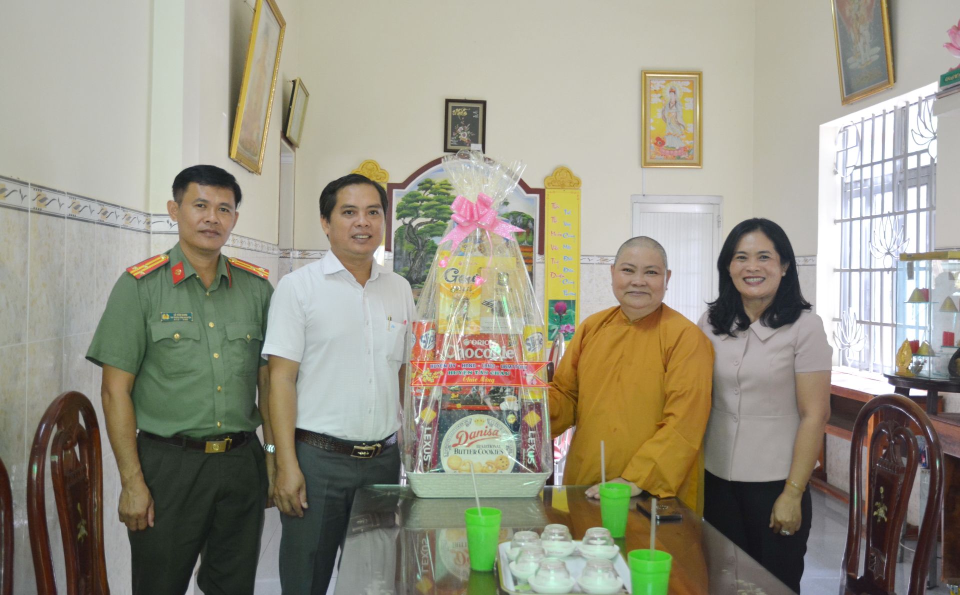 Đoàn do bà Trần Thị Thanh Hằng– Phó Bí thư Thường trực Huyện uỷ làm trưởng đoàn đã đến thăm và tặng quà các cơ sở thờ tự như: Tịnh xá Ngọc Lê, xã Suối Dây; chùa Suối Pháp, xã Suối Ngô; chùa Đông Quang, xã Tân Đông; chùa Vạn Phước, xã Tân Hà.