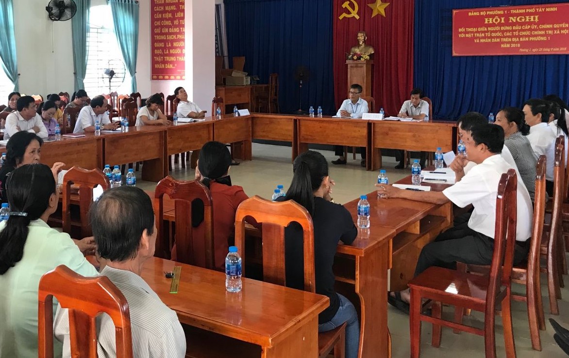 Ngày 23.9, UBND phường 1, Thành phố Tây Ninh tổ chức đối thoại giữa người đứng đầu cấp ủy, chính quyền với Mặt trận Tổ quốc, các tổ chức chính trị xã hội và nhân dân trên địa bàn.