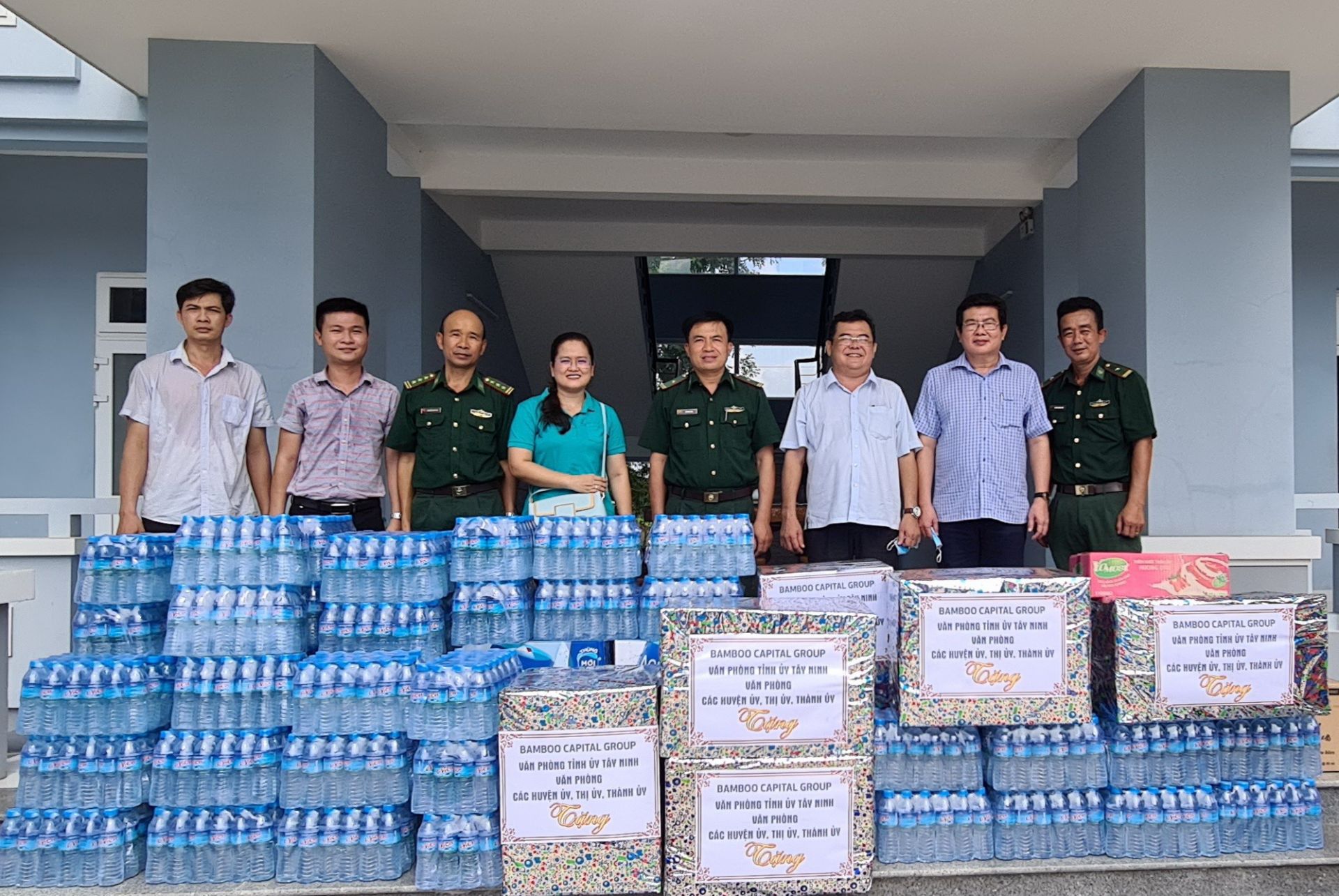 Đoàn trao tặng mỗi chốt chống dịch trên biên giới 3 triệu đồng tiền mặt, nước sạch đóng chai, gạo, mì gói, cùng nhiều nhu yếu phẩm khác. Tất cả quà và vật phẩm thiết yếu được chuyển đến cho các chiến sĩ biên phòng, các lực lượng khác làm nhiệm vụ tại 13 chốt chống dịch Covid-19 của Đồn biên phòng Phước Chỉ.