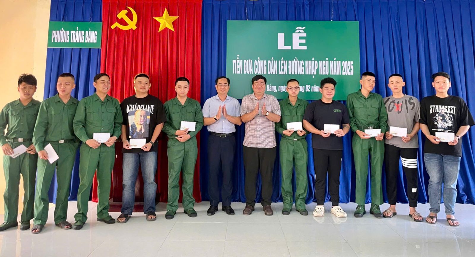 * Sáng 11.2, ông Trần Tương Quốc– Chủ tịch UBND thị xã Trảng Bàng cùng đoàn công tác đến thăm 52 tân binh trên địa bàn 2 xã Phước Chỉ, Phước Bình sẵn sàng lên đường nhập ngũ năm 2025.