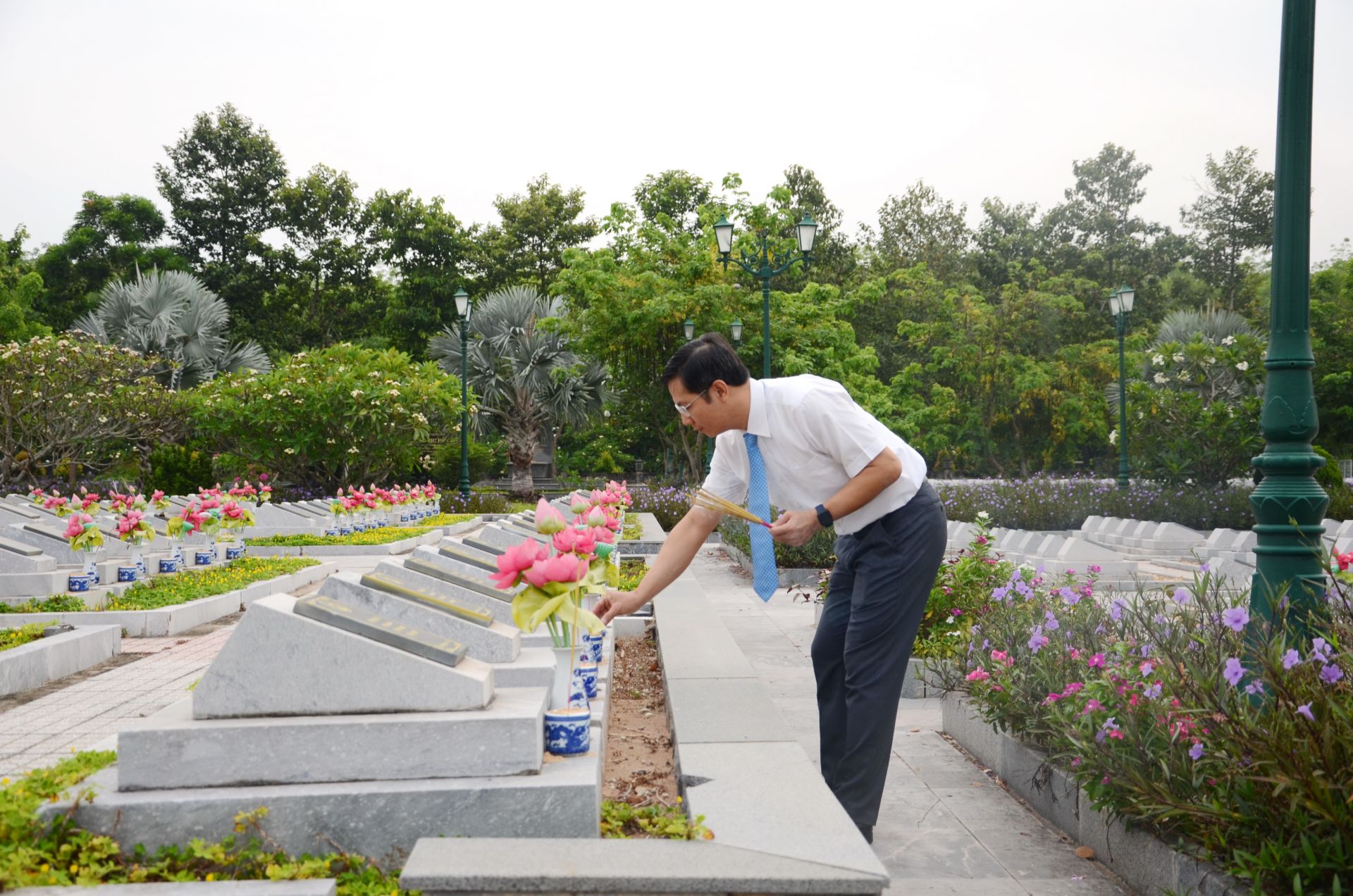 Sau lễ dâng hoa, dâng hương, các đại biểu đã đến thắp hương tại các phần mộ của các anh hùng liệt sĩ nhằm tưởng nhớ và tri ân sâu sắc.