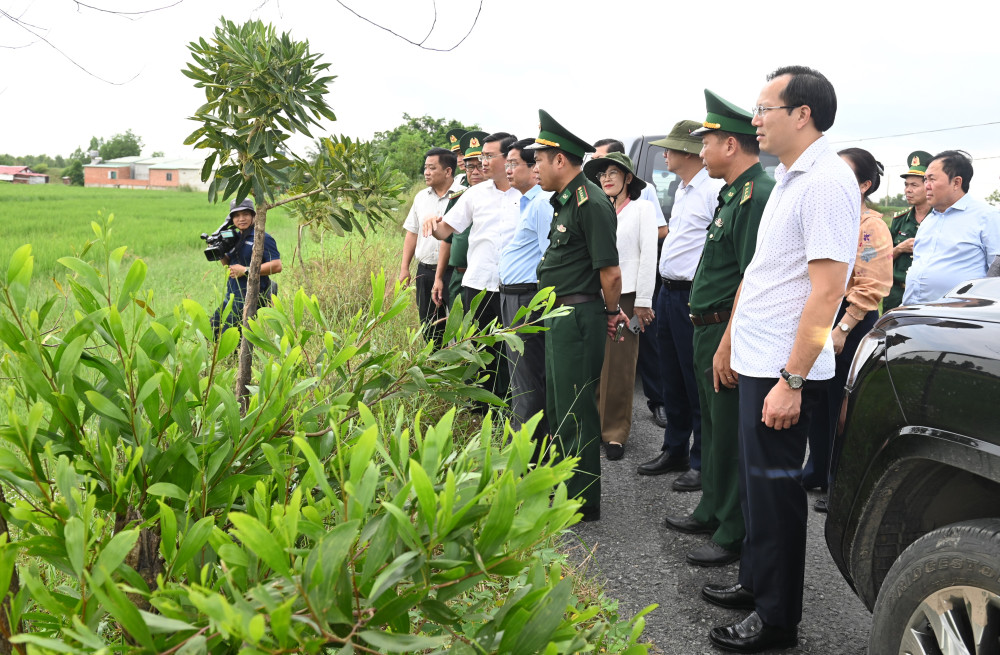 Đoàn khảo sát toàn tuyến biên giới từ Đồn Biên phòng Sông Trăng (xã Hưng Điền), đến Đồn Biên phòng Vàm Trảng Trâu (xã Hòa Hội, xã Phước Vinh).