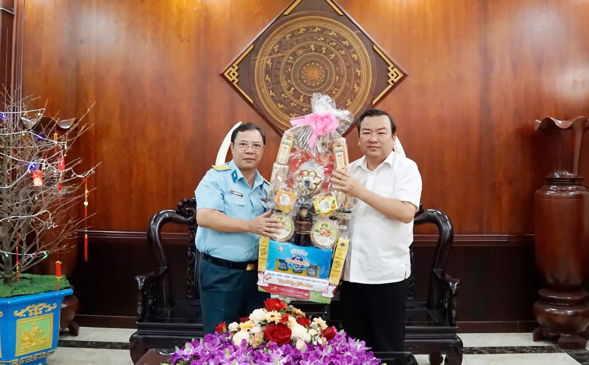 Phó Bí thư Thường trực Tỉnh uỷ Phạm Hùng Thái tặng quà, chúc Tết cán bộ, chiến sĩ Cục 12 (thuộc Tổng cục II - Bộ Quốc Phòng).