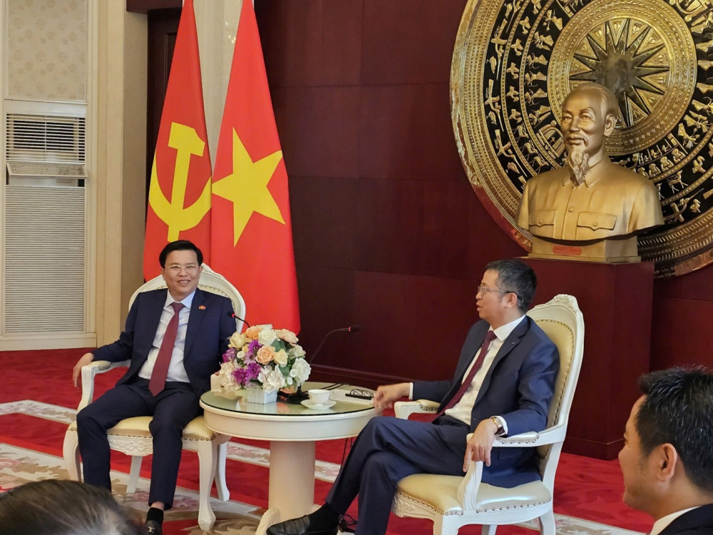Tại buổi gặp gỡ, Đại sứ Phạm Thanh Bình thông tin về kết quả hợp tác ngoại giao và kinh tế giữa Việt Nam – Trung Quốc trong thời gian qua, đồng thời nhấn mạnh ý nghĩa chuyến công tác của đoàn, qua đó thúc đẩy quan hệ song phương, đặc biệt trong bối cảnh hai nước kỷ niệm 75 năm thiết lập quan hệ ngoại giao và tổ chức Năm giao lưu nhân văn Việt – Trung 2025.