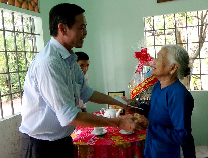 Chủ tịch UB.MTTQVN tỉnh chúc sức khoẻ, tặng quà cho các mẹ VNAH Phạm Thị Ne, Mai Thị Thưng (cùng ngụ xã Suối Đá), Lê Thị Mĩa (ngụ xã Bàu Năng) và gia đình ông Nguyễn Tấn, cán bộ tiền khởi nghĩa (ngụ tại xã Chà Là).