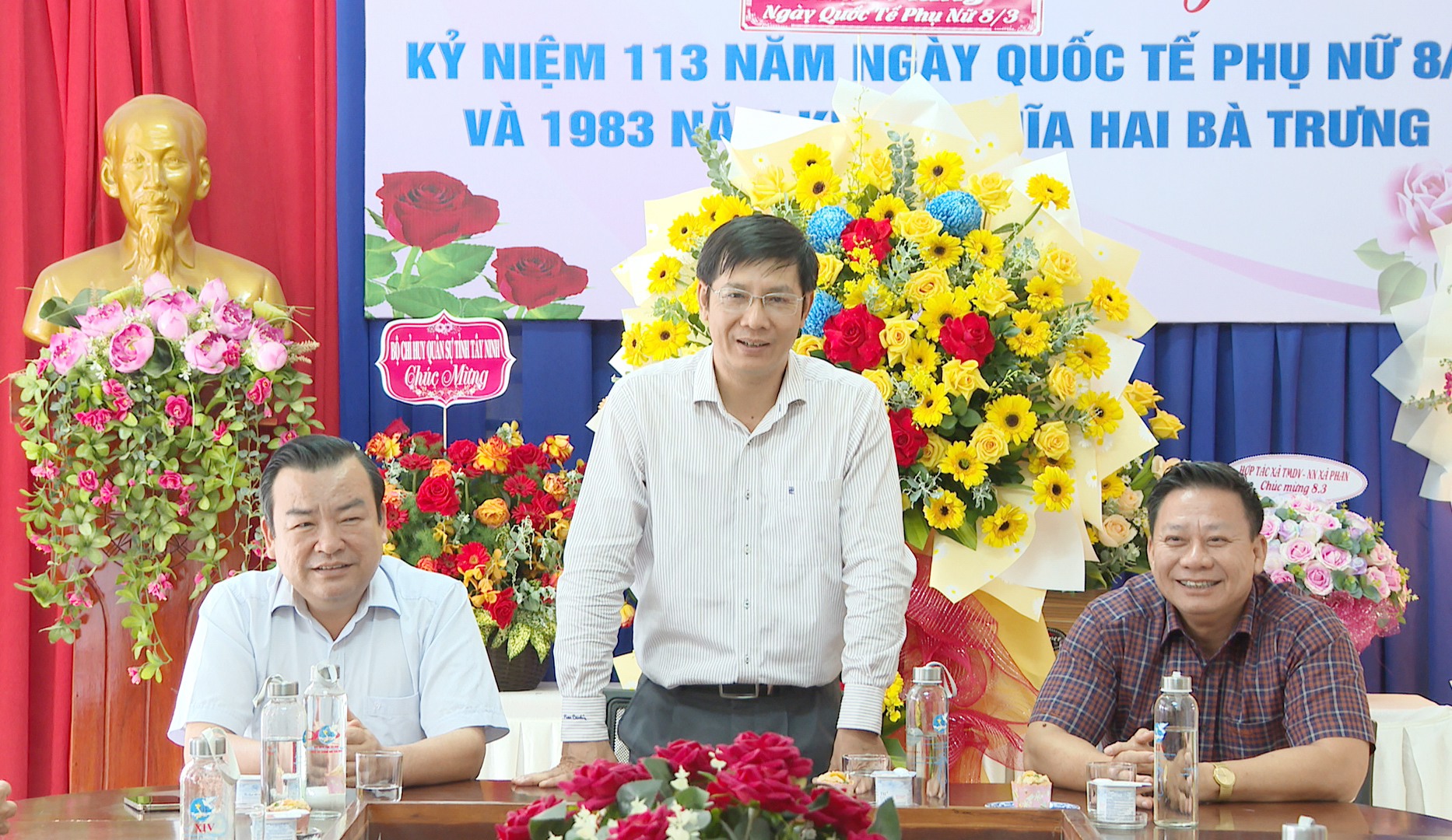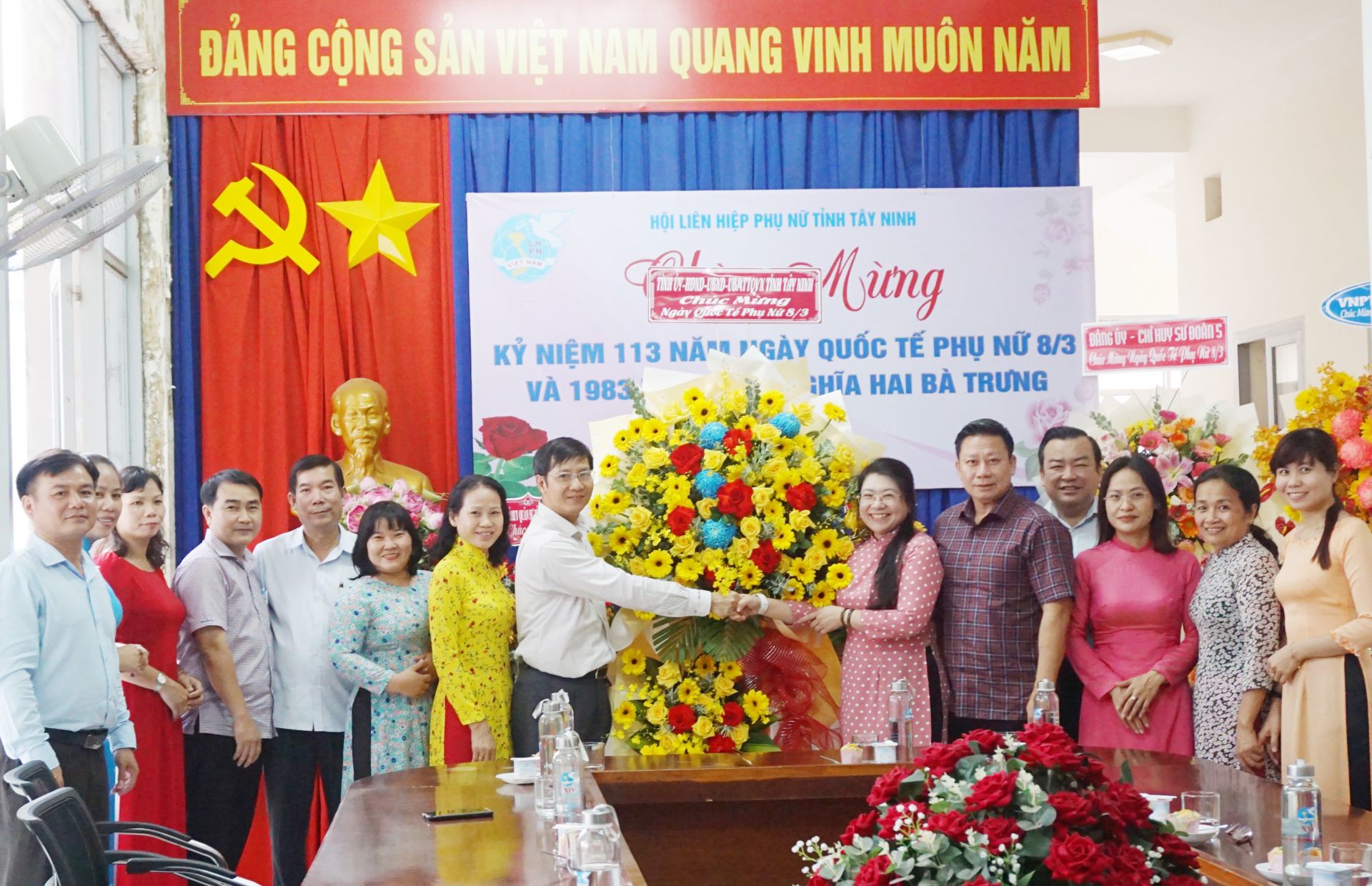 Chiều 7.3, Bí thư Tỉnh uỷ, Chủ tịch HĐND tỉnh Nguyễn Thành Tâm cùng Phó Bí thư Thường trực Tỉnh uỷ, Trưởng đoàn Đại biểu Quốc hội Phạm Hùng Thái và Chủ tịch UBND tỉnh Nguyễn Thanh Ngọc đến thăm, tặng hoa chúc mừng Hội Liên hiệp Phụ nữ tỉnh nhân kỷ niệm 113 năm Ngày Quốc tế phụ nữ 8.3 và 1983 năm Khởi nghĩa Hai Bà Trưng.
