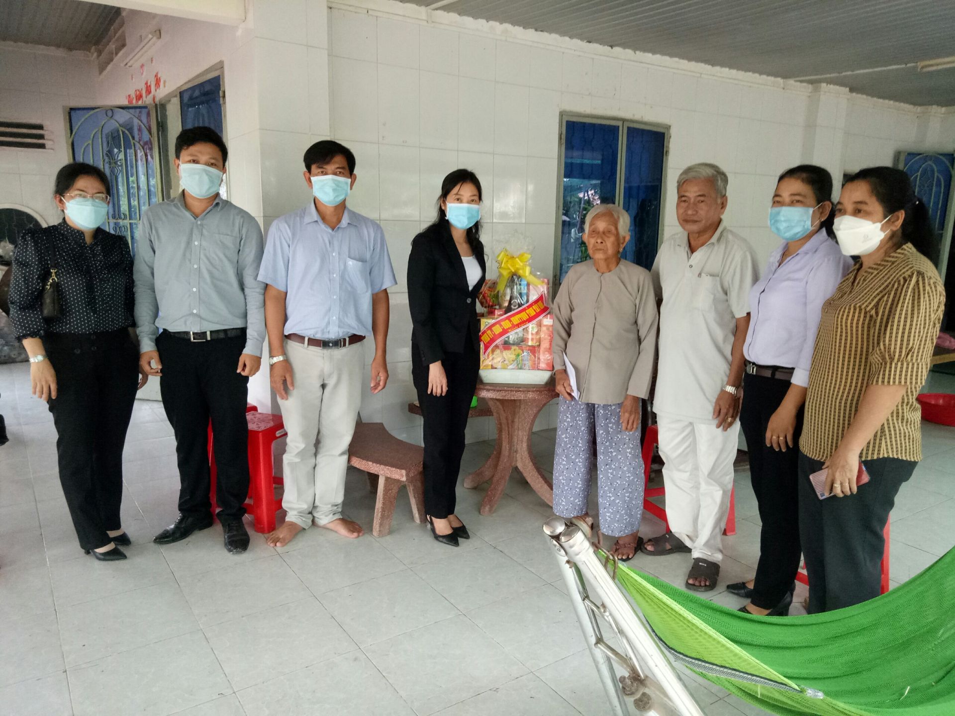 Bà Hoàng Thị Thanh Thúy- Phó Trưởng đoàn Đoàn đại biểu Quốc hội tỉnh (thứ tư, từ trái qua) thăm, tặng quà cho bà Nguyễn Thị Lẹ, ngụ khu phố Lộc Khê, phường Gia Lộc, thị xã Trảng Bàng.