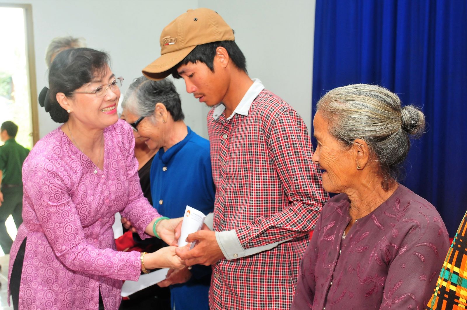 Bà Nguyễn Thị Quyết Tâm- Chủ tịch HĐND TP.Hồ Chí Minh tặng quà Tết cho người dân huyện Trảng Bàng. |