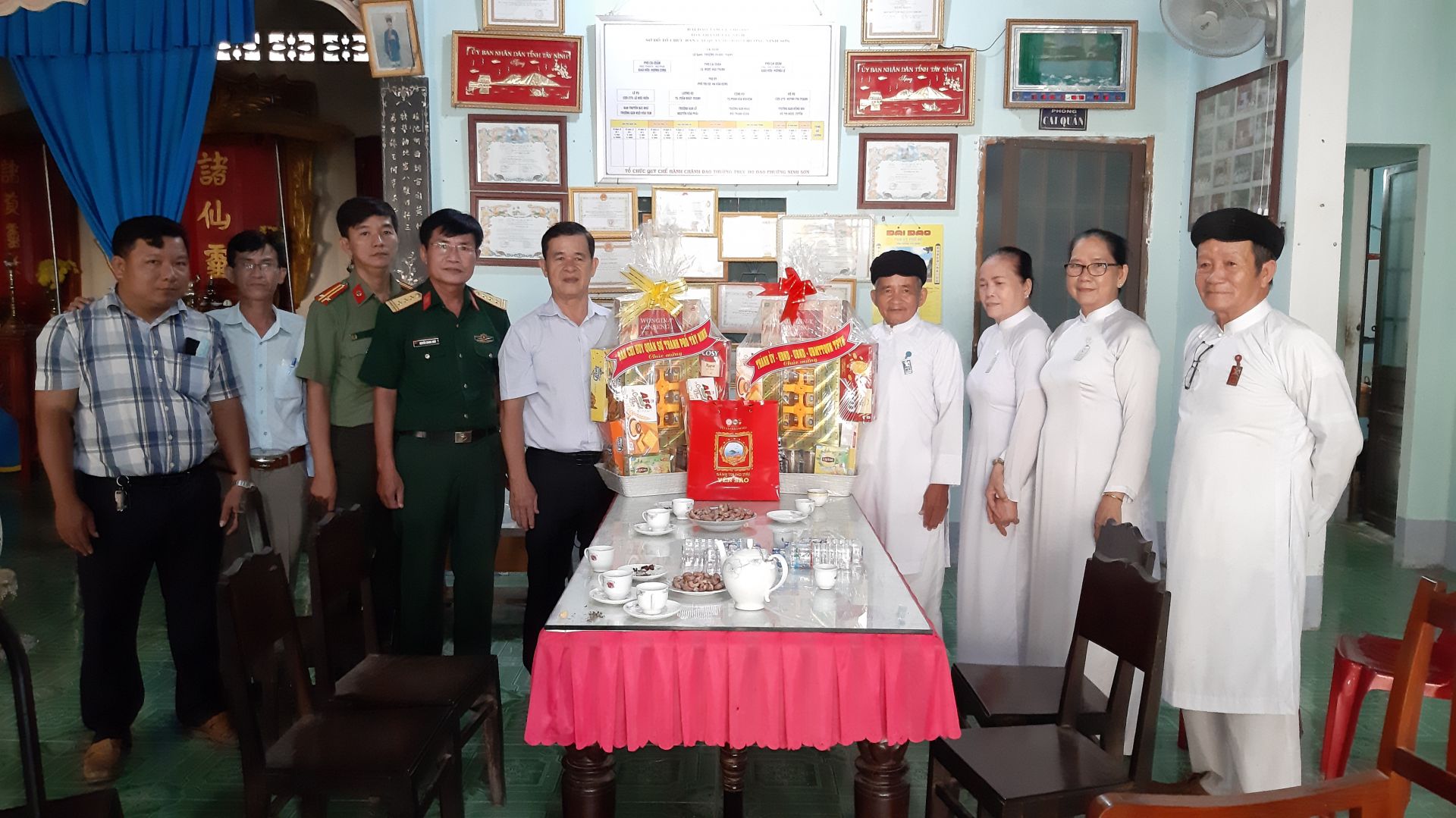 Nhân dịp này, đoàn gửi tặng mỗi cơ sở tôn giáo một phần quà chúc mừng của Thành uỷ, HĐND, UBND, UBMTTQVN Thành phố. Ngoài ra lãnh đạo Công an, Ban Chỉ huy Quân sự Thành phố cũng trao tặng quà chúc mừng Đại lễ Hội yến Diêu Trì cung năm 2022.