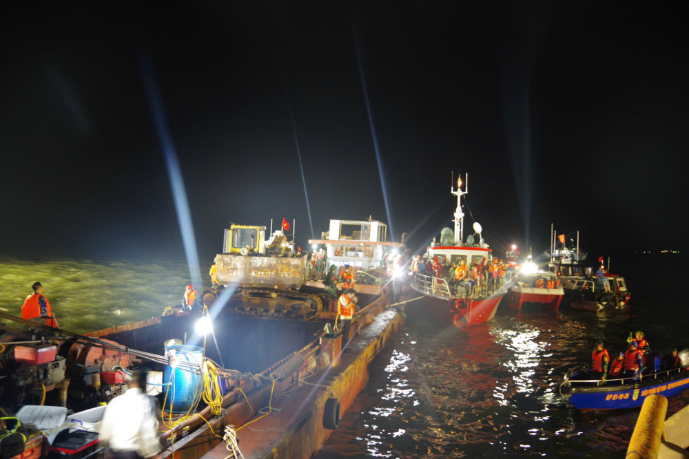 Tàu Vịnh Xanh được trục vớt trong đêm