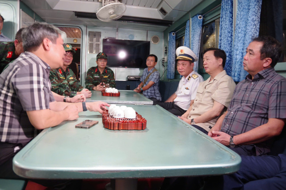 Phó Thủ tướng Trần Hồng Hà trao đổi với cơ quan chức năng trên tàu 285, Hải đội 113, Lữ đoàn 170, Vùng 1 Hải quân