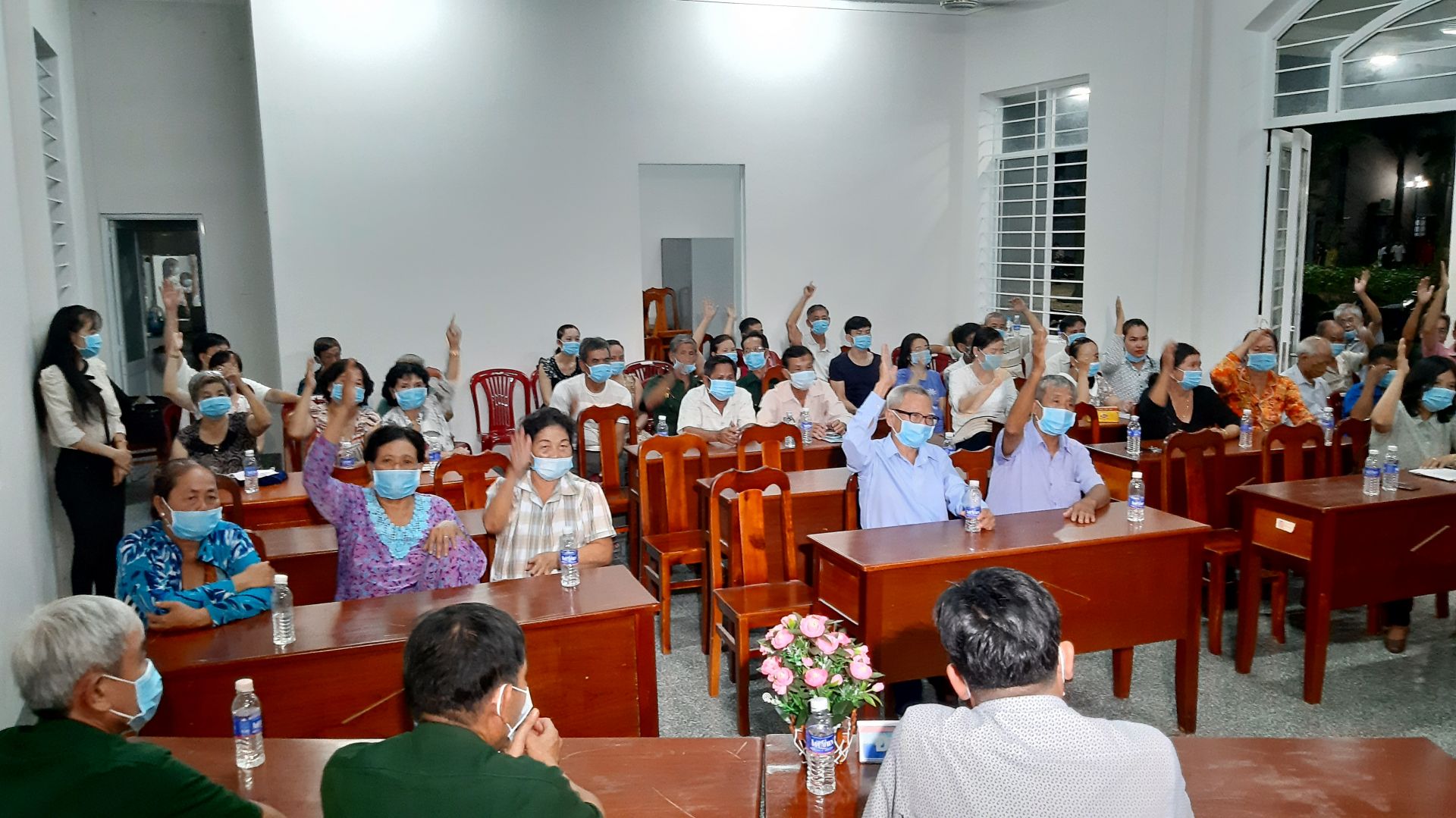 100% cử tri khu phố 2 biểu quyết thống nhất giới thiệu những người ứng cử viên có tên trong danh sách vừa giới thiệu.