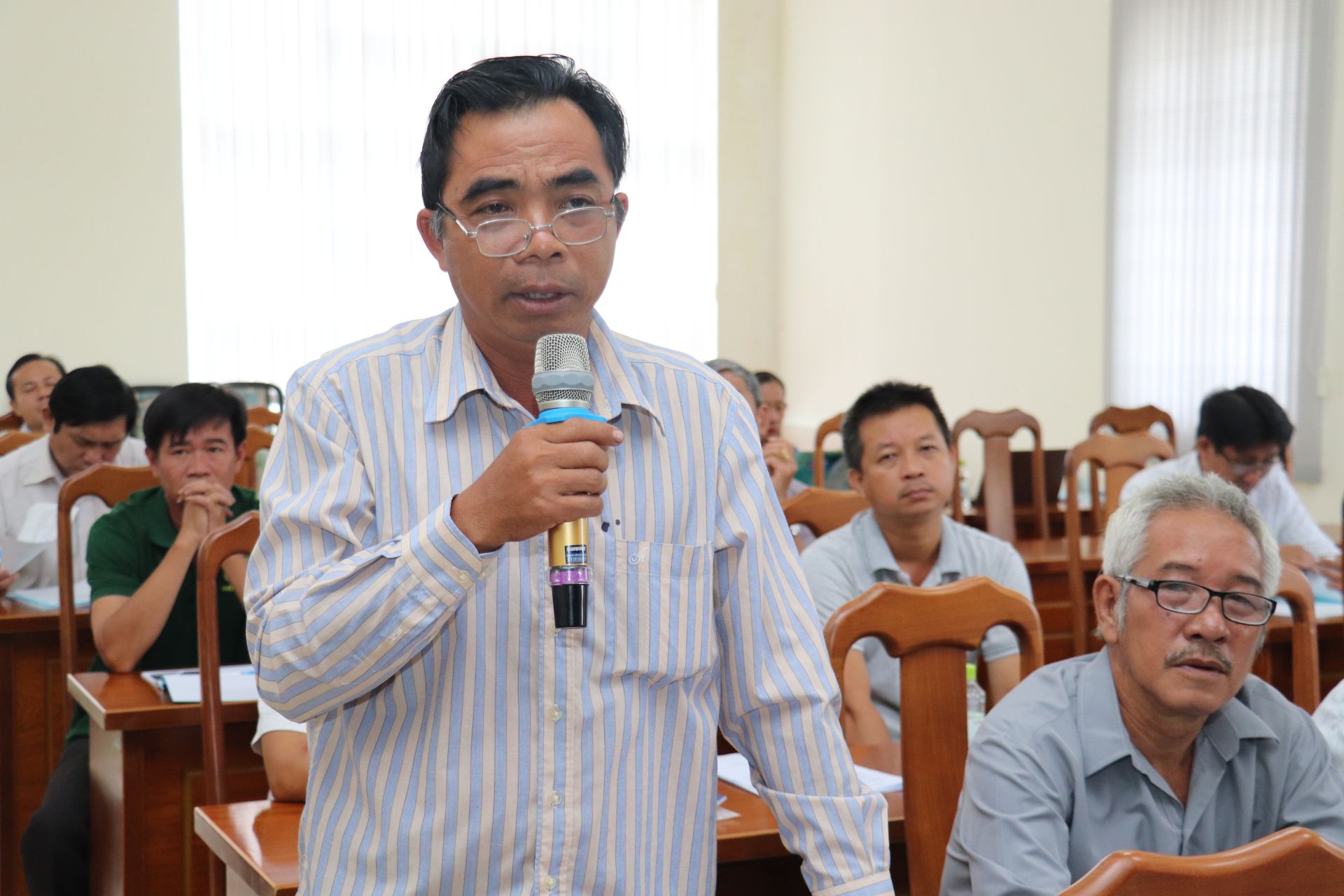 Đại diện nông dân trồng đậu phộng trên địa bàn tỉnh nêu ý kiến góp ý tại hội thảo.