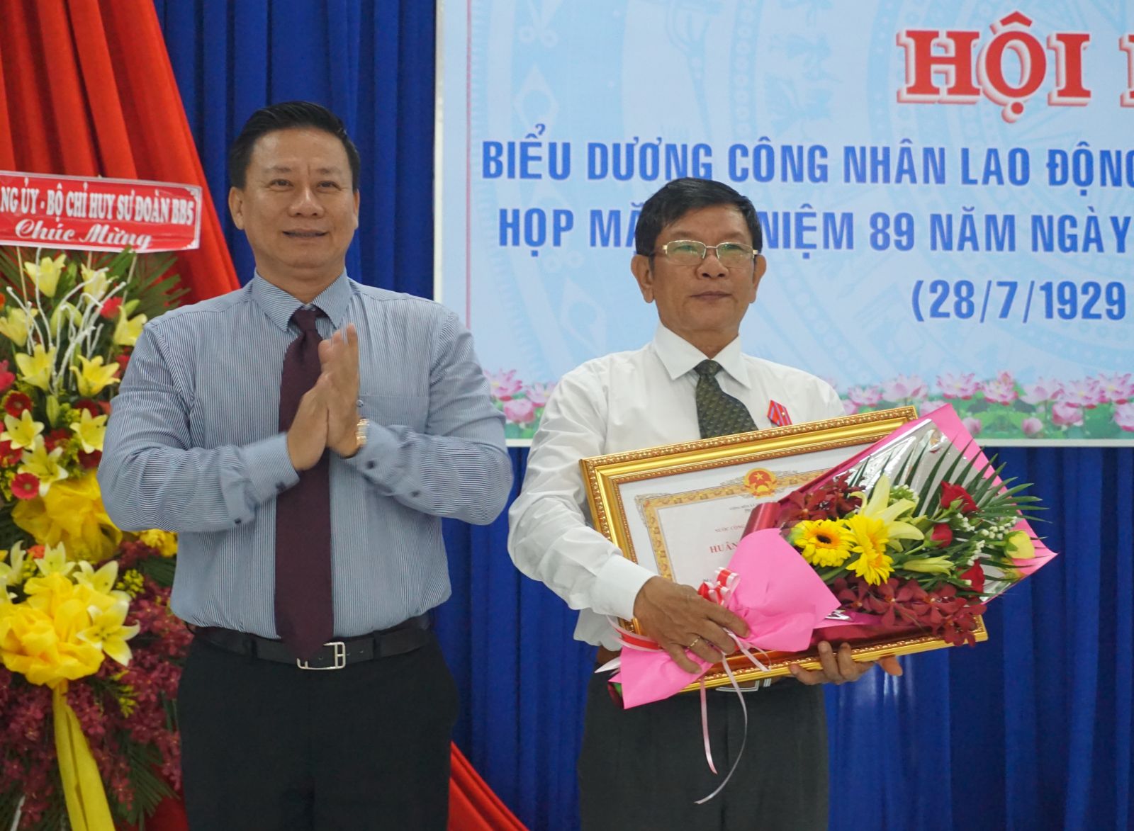 Phó Chủ tịch UBND tỉnh Nguyễn Thanh Ngọc trao Huân chương Lao động hạng 3 cho ông Nguyễn Xuân Hồng- nguyên Chủ tịch LĐLĐ tỉnh.