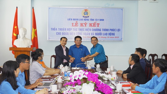 Lễ ký kết diễn ra vào sáng 18.10, giữa Liên đoàn Lao động tỉnh với Công ty cổ phần Golden ASI food (Phường Bình Tân, TP.Hồ Chí Minh) và Công ty TNHH MTV sản xuất thương mại thực phẩm Công Danh (huyện Hóc Môn, TP.Hồ Chí Minh).