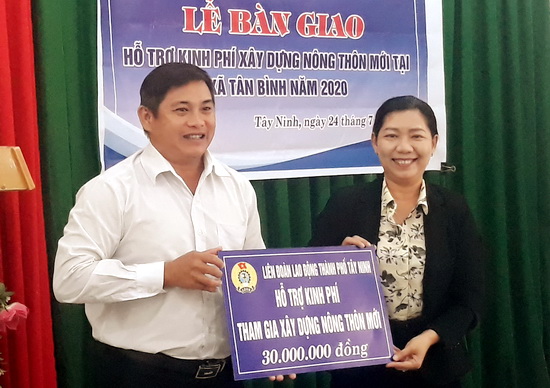 Liên đoàn Lao động thành phố vừa trao số tiền 30 triệu đồng hỗ trợ xã Tân Bình (TP.Tây Ninh) xây dựng nông thôn mới.