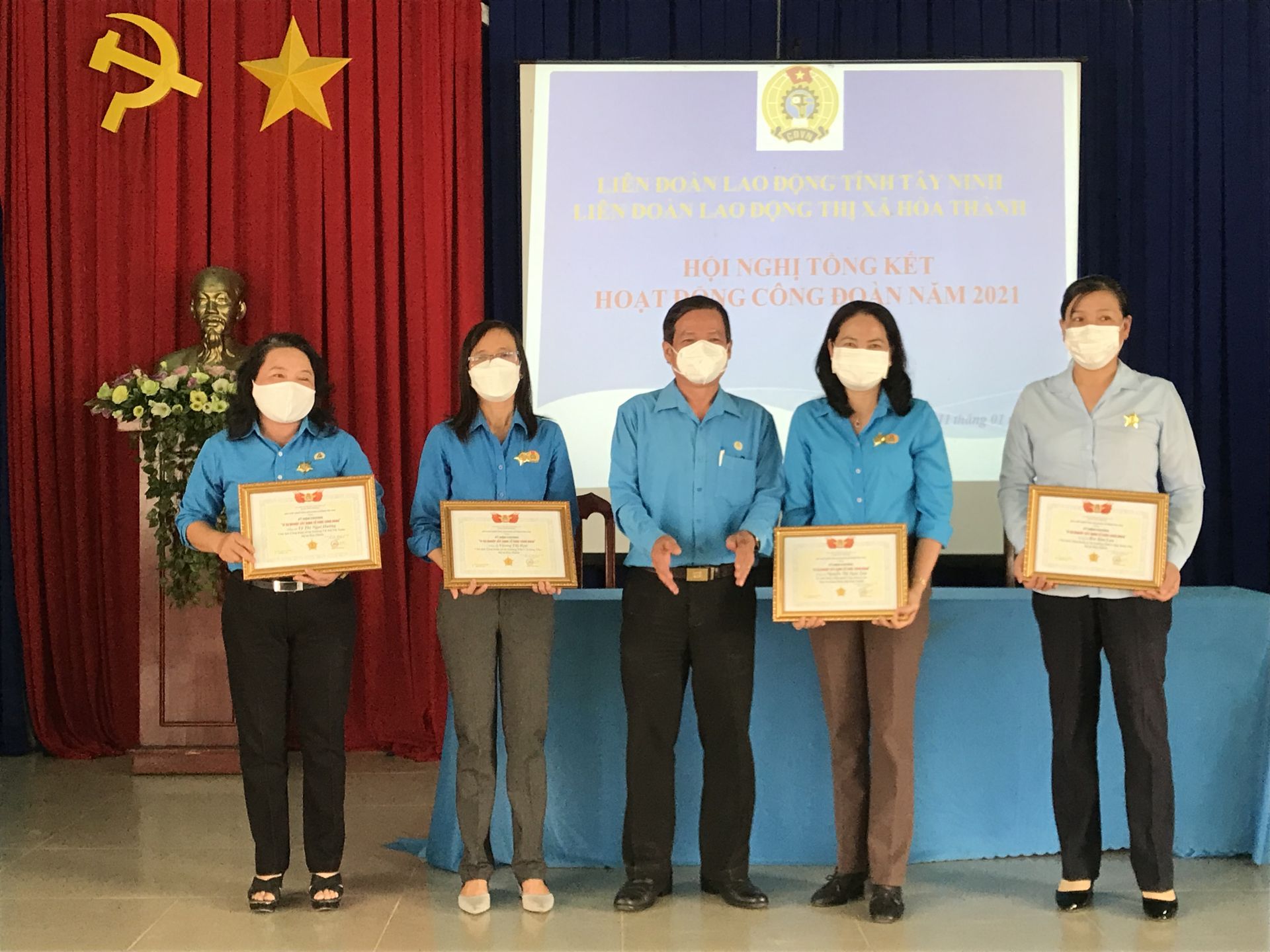 Dịp này, Tổng LĐLD Việt Nam tặng Kỷ niệm chương “Vì sự nghiệp xây dựng tổ chức Công đoàn” cho 4 cá nhân; UBND thị xã Hòa Thành và LĐLĐ thị xã khen thưởng cho 9 tập thể và 15 cá nhân đã có thành tích xuất sắc trong hoạt đông Công đoàn năm 2021.