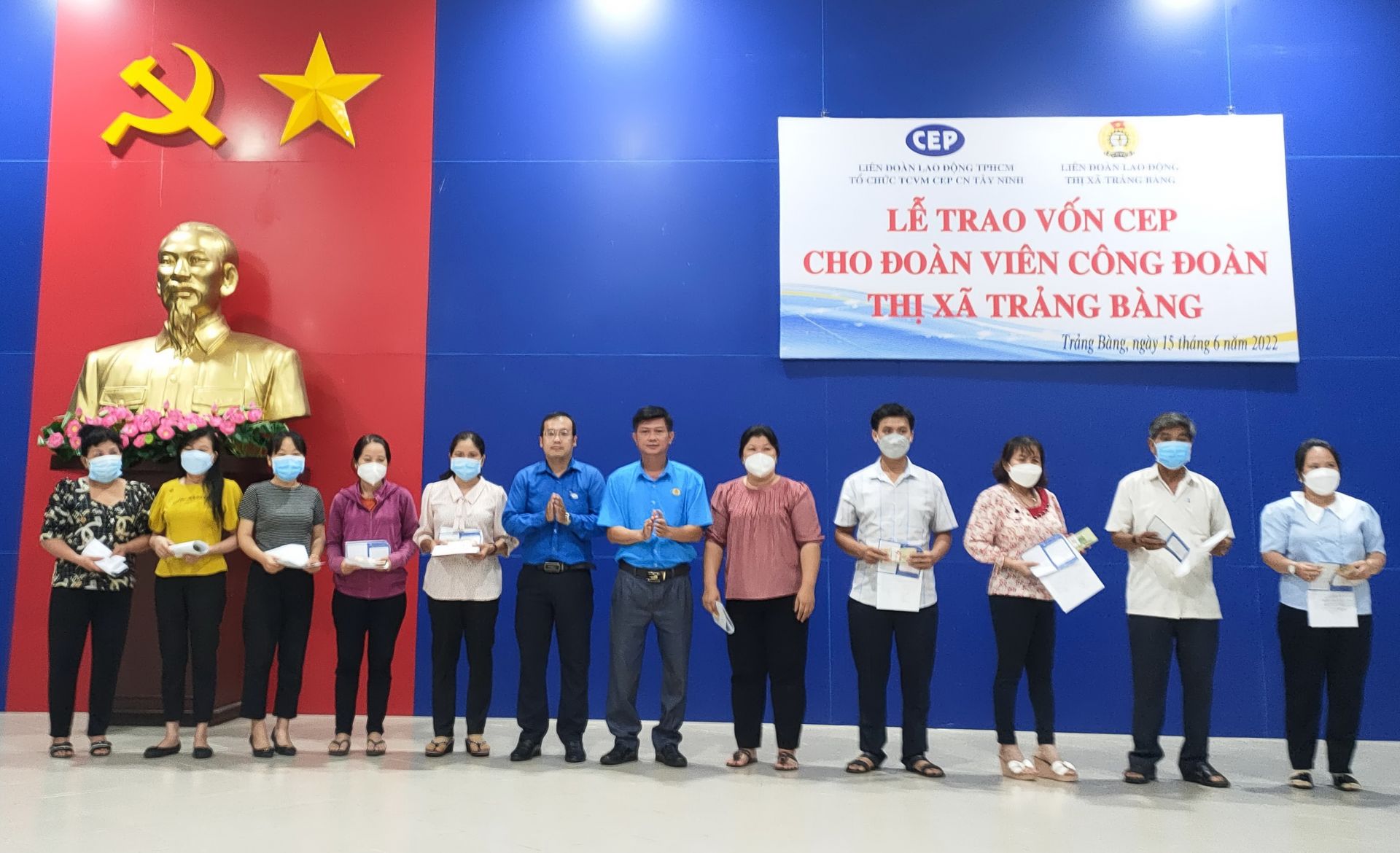 Liên đoàn Lao động thị xã Trảng Bàng phối hợp Tổ chức tài chính vi mô CEP Chi nhánh Tây Ninh tổ chức lễ trao vốn cho đoàn viên và người lao động có thu nhập thấp trên địa bàn thị xã. Đến dự lễ có ông Trần Lê Duy- Chủ tịch Liên đoàn Lao động tỉnh.