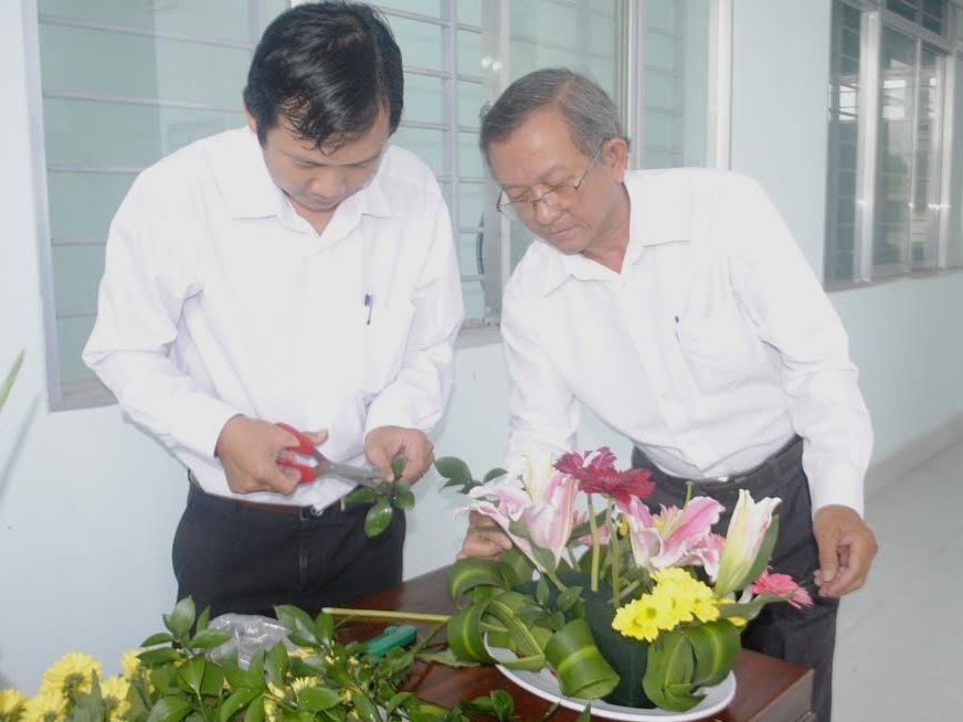 Một đơn vị tham gia phần thi cắm hoa.