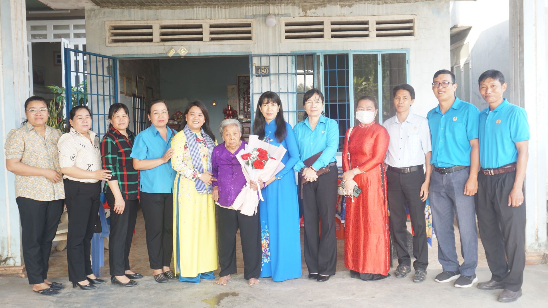 Đoàn đến thăm, tặng quà Mẹ VNAH Phan Thị Hợi.