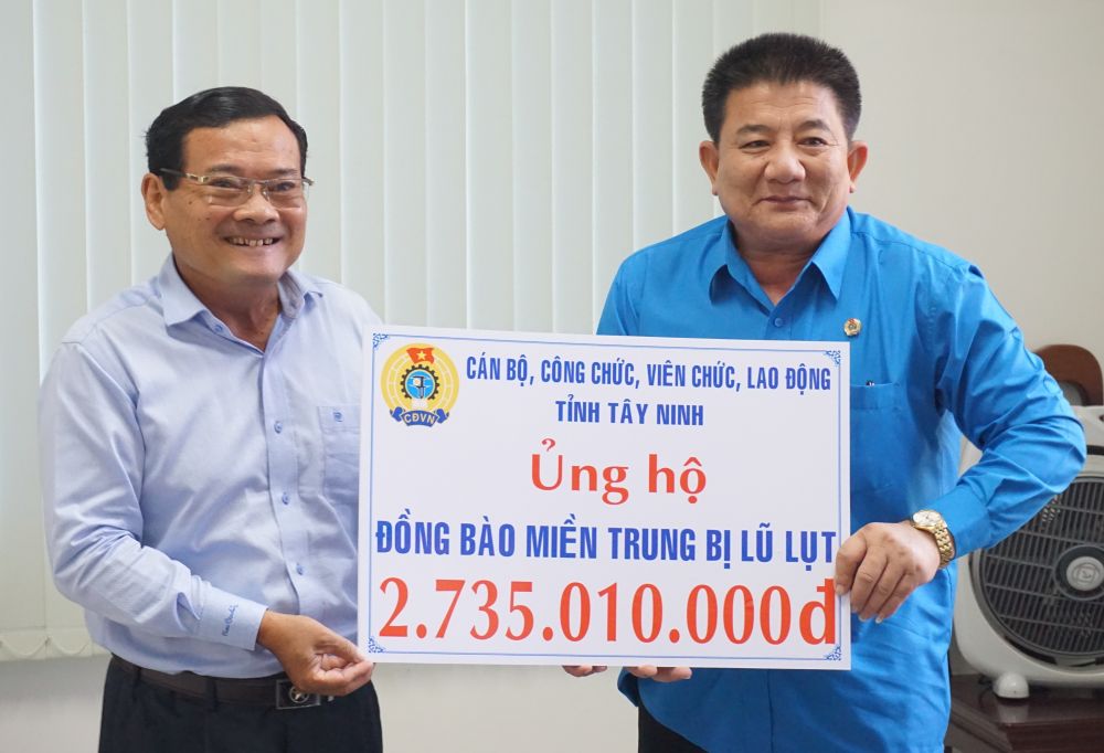 Trong đó, LĐLĐ tỉnh đã chuyển về Tổng LĐLĐ Việt Nam 500 triệu đồng, số tiền còn lại 2.735.010.000 đồng được chuyển cho Ủy ban MTTQ VN tỉnh Tây Ninh.