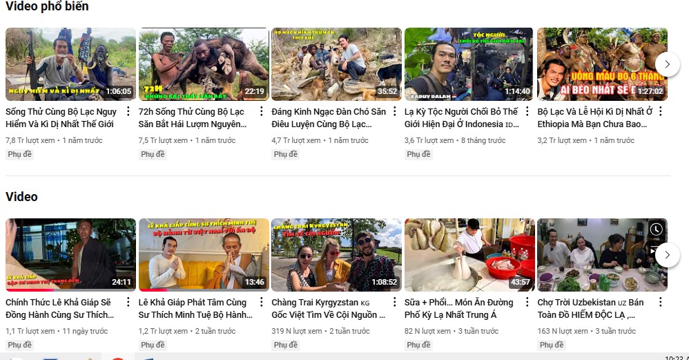 Các video của Khả Giáp chủ yếu chia sẻ về những khám phá, trải nghiệm của anh trên mỗi hành trình tại Việt Nam và các quốc gia mà anh đi qua.