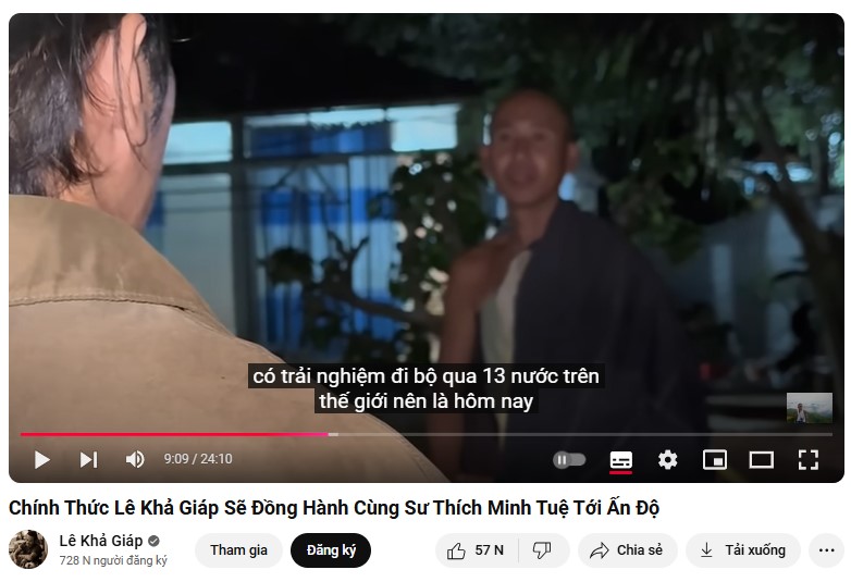 Mới đây, trong video của mình chia sẻ trên youtube, Lê Khả Giáp đã chia sẻ về việc anh đã gặp ông Thích Minh Tuệ và sẽ hỗ trợ, đồng hành cùng ông trong chuyến bộ hành tới Ấn Độ.