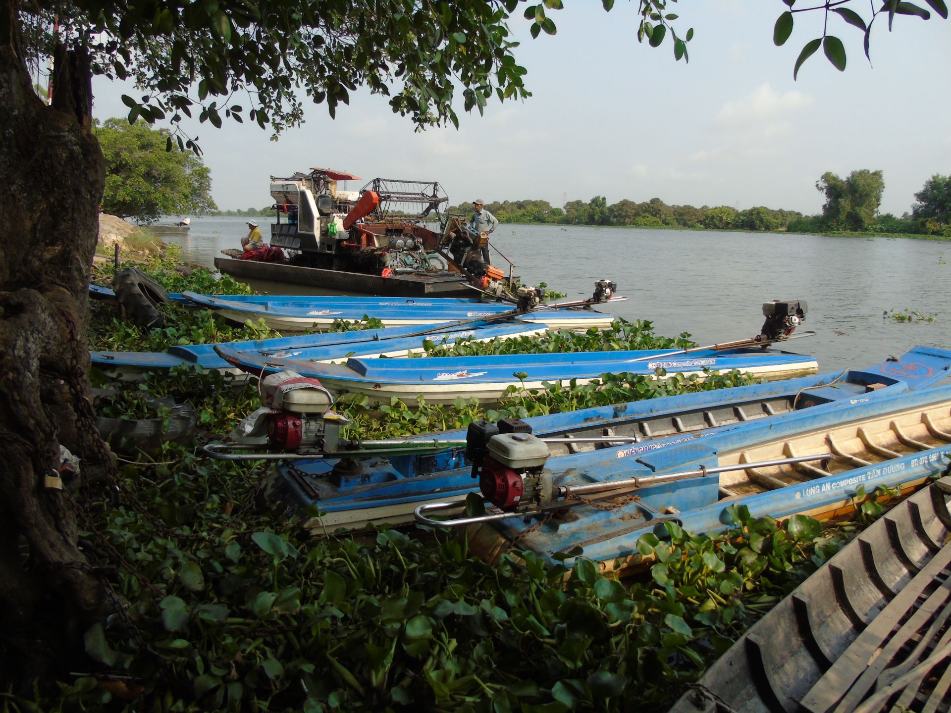 Có thuyền thì chở những chiếc máy gặt đập đến các cánh đồng; thuyền lại đầy những bao lúa chật căng về bán buôn ngay trên bến. Xa xa, những chiếc ghe bầu chở khẳm thóc vàng, xăm xăm rẽ sóng xuôi dòng.
