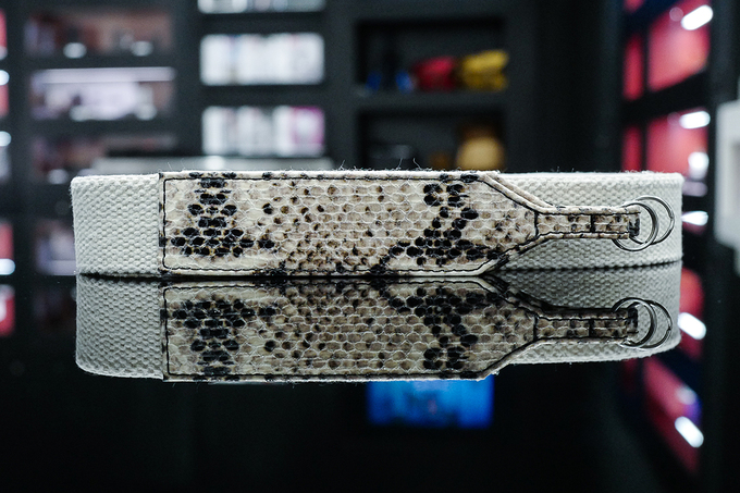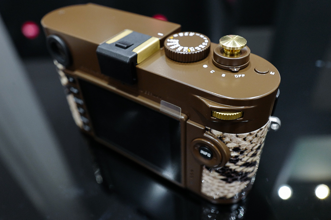 Phần da bọc ngoài của máy có hoạ tiết như da trăn nhưng thực tế được làm bằng chất liệu tổng hợp cao cấp. Leica cho biết lớp da này được sản xuất dưới sự cố vấn của Stella McCartney, con gái của cựu thành viên The Beatles, Paul McCartney - nhà thiết kế thời trang kiêm nhà hoạt động vì quyền động vật.