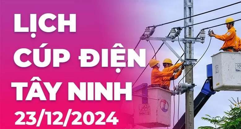 Thông tin lịch cúp điện tại Tây Ninh theo từng khu vực được cập nhật mới nhất từ Điện lực miền Nam ngày 23/12/2024.