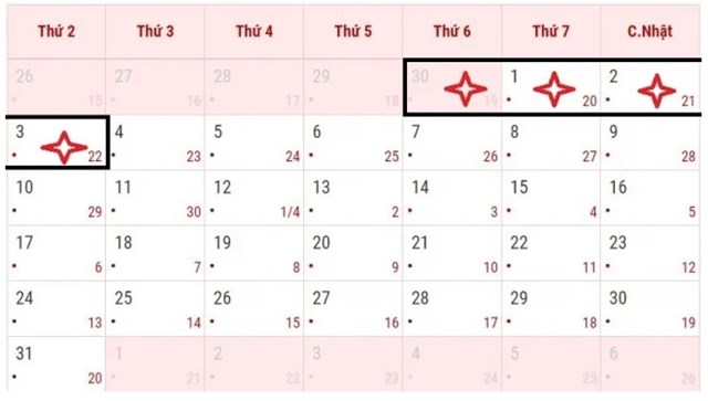 Ngày lễ 30/4 và 1/5 được nghỉ 4 ngày