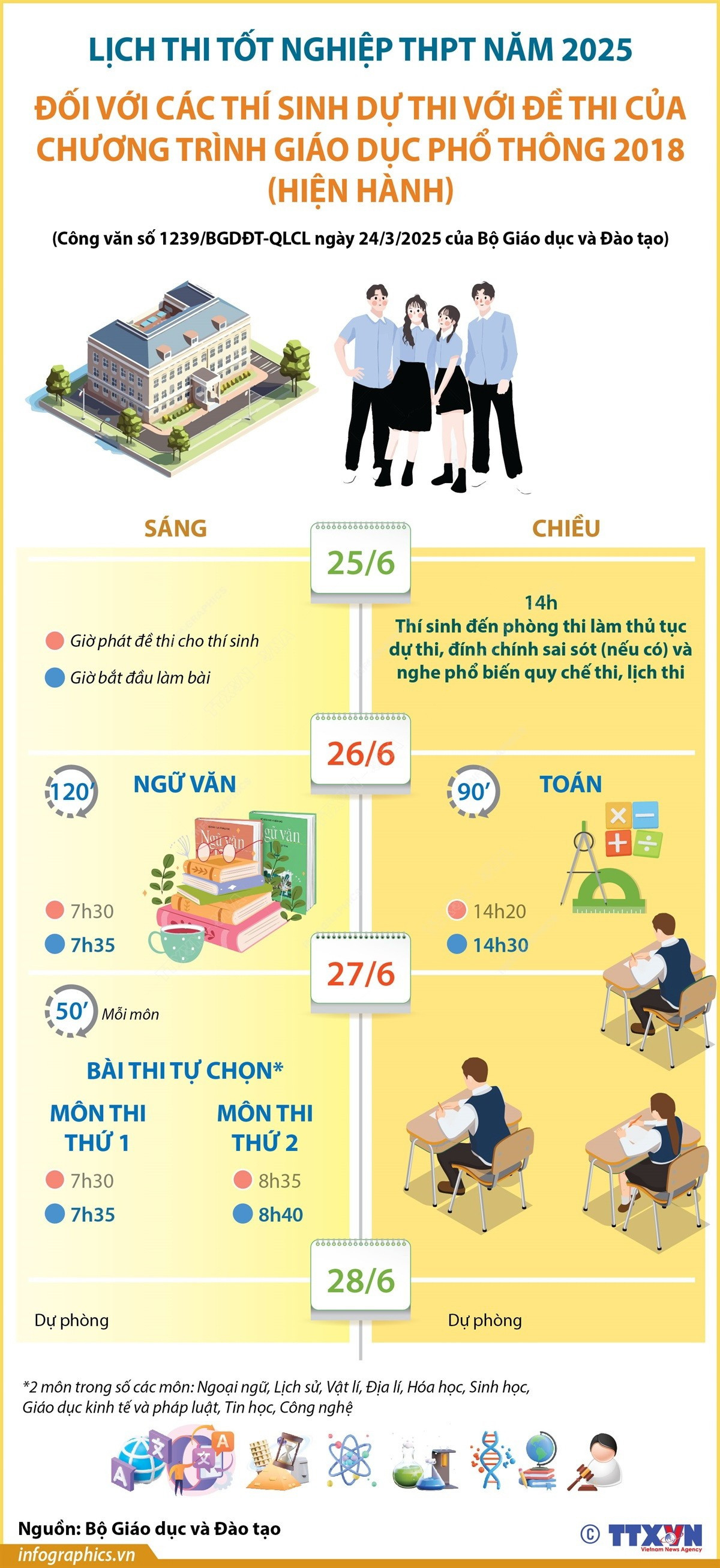 Kỳ thi tốt nghiệp Trung học phổ thông năm 2025 diễn ra trong hai ngày 26 và 27/6/2025, đối với chương trình giáo dục hiện hành.
