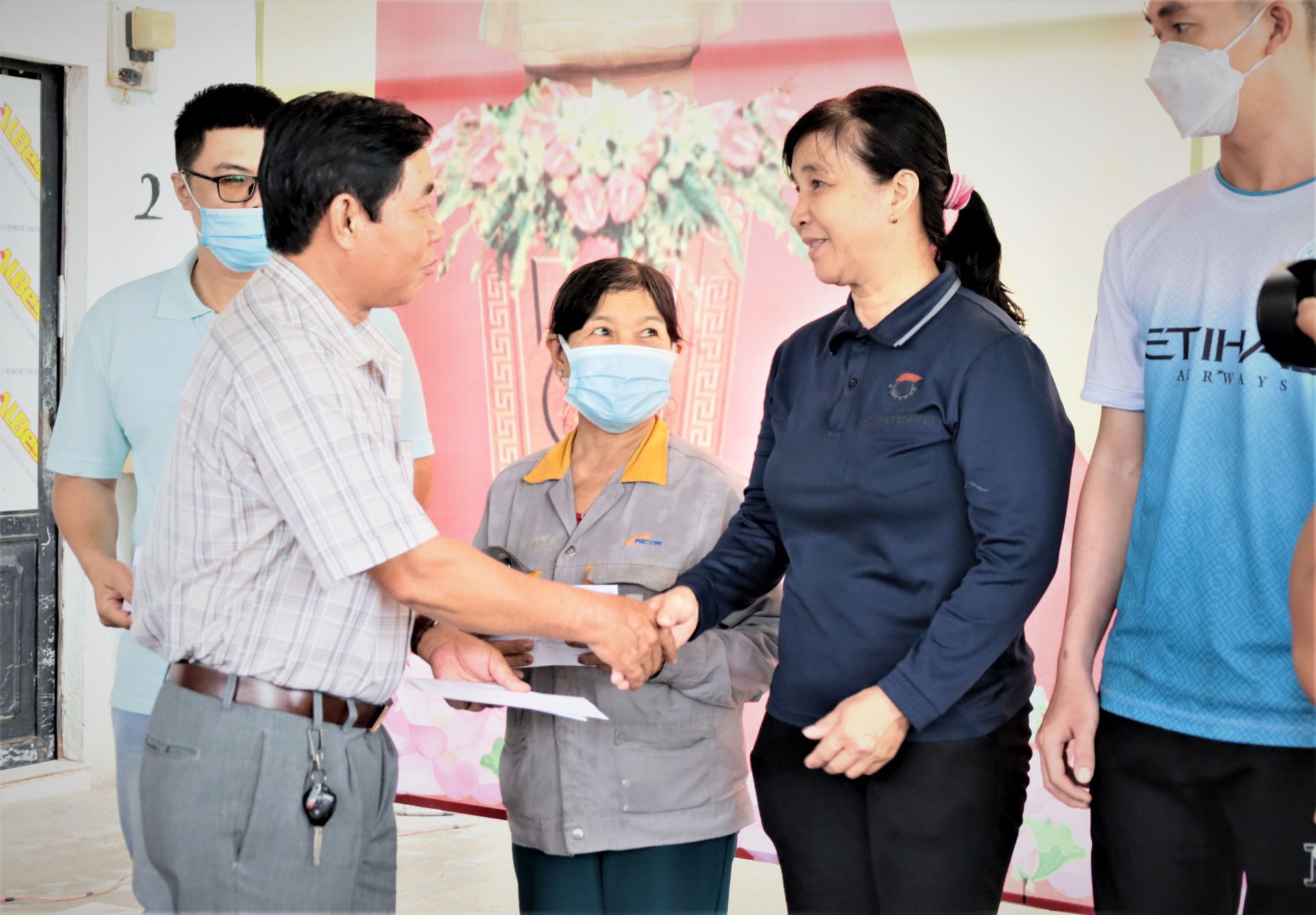 Dự buổi trao quà có ông Nguyễn Văn Trung- Phó trưởng Ban Dân vận Tỉnh uỷ và ông Trần Lê Duy- Chủ tịch Liên đoàn Lao động tỉnh. Về phía các tỉnh có ông Trần Xuân Điền- Phó trưởng Ban Dân vận Thành uỷ Thành phố Hồ Chí Minh cùng đại diện Liên đoàn Lao động các tỉnh: Đồng Nai, Bình Dương, Long An và Thành phố Hồ Chí Minh.