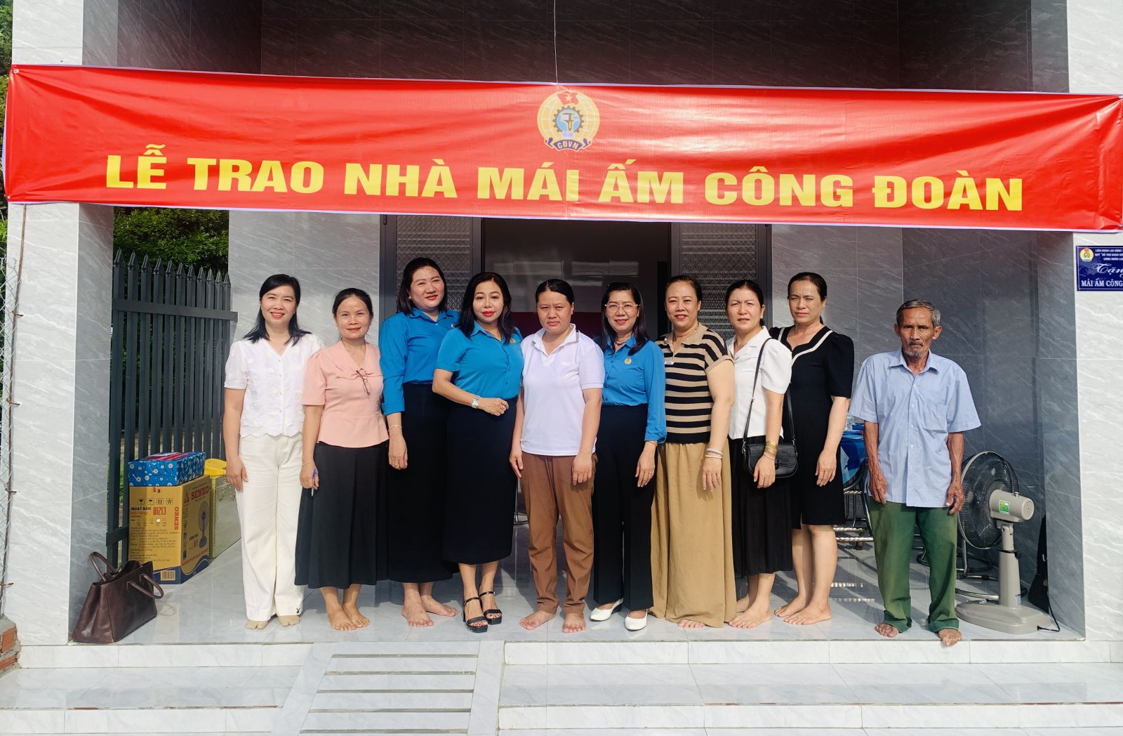 Dịp này, lãnh đạo Liên đoàn Lao động tỉnh, Thành phố và địa phương trao tặng nhiều phần quà chúc mừng 2 hộ có căn nhà mới khang trang, ổn định cuộc sống.